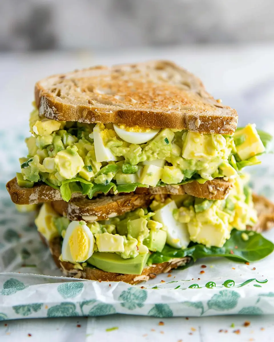 Feel free to toast the bread lightly for an extra crispy texture. An avocado egg salad sandwich is a superb choice for meal prep or lunch on the go.