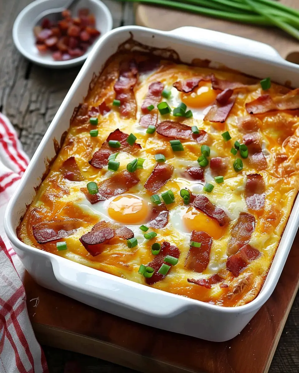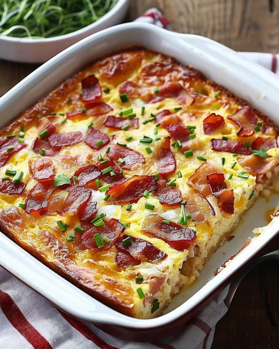 One of the highlights of the bacon and egg breakfast casserole is its protein content. With about 18–20 grams of protein per serving, it provides a great start to your day, keeping you full and energized.
