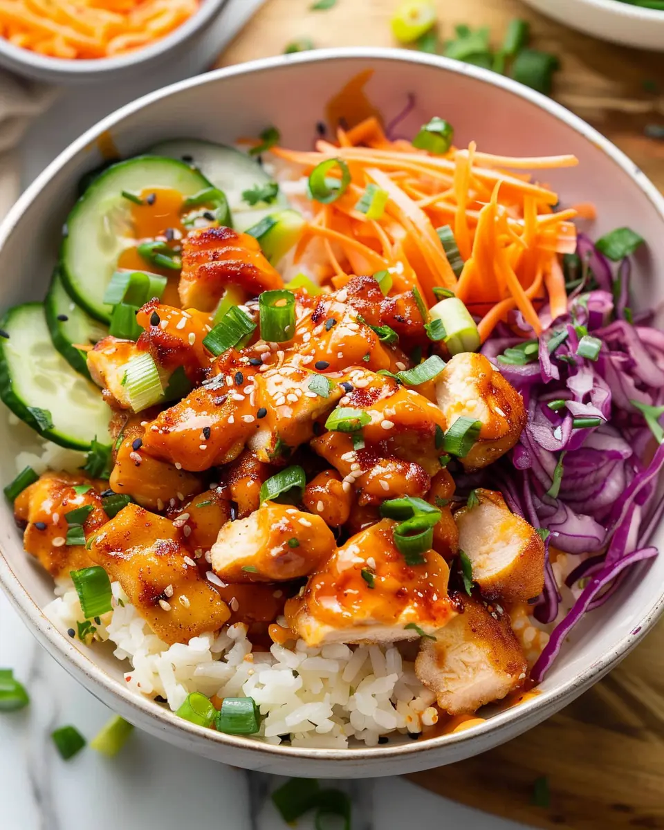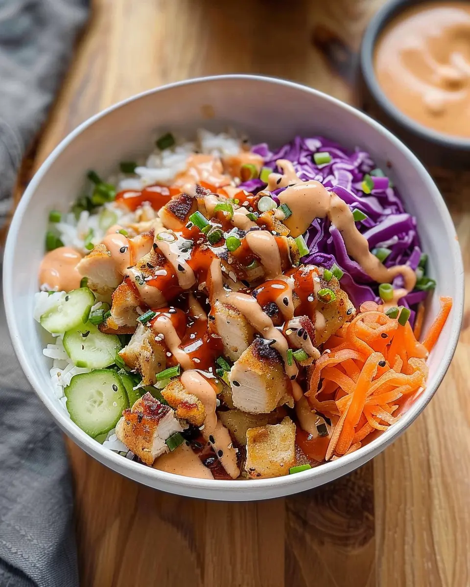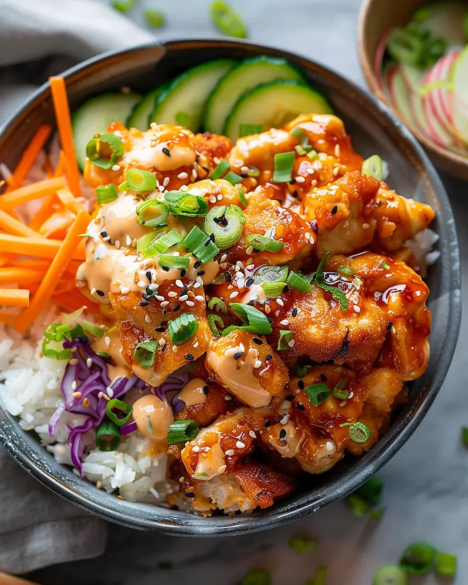 Serve hot and enjoy! This Bang Bang Chicken Bowl is not only a feast for your eyes but also a meal that celebrates flavors and textures.