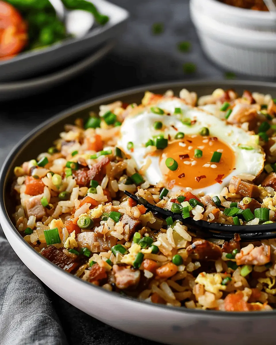 Breakfast Fried Rice: Easy Recipe with Turkey Bacon and Chicken Ham