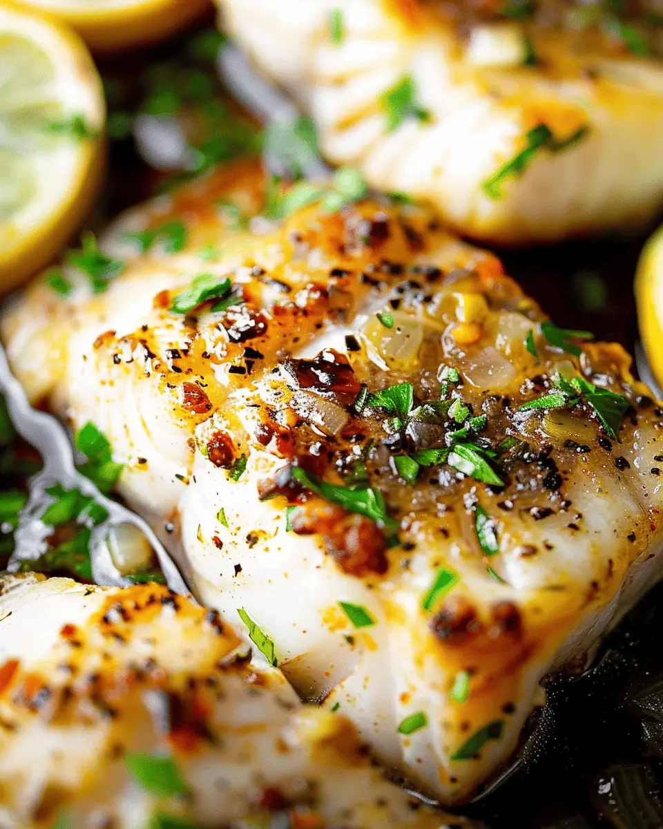 - Drizzle the lemon garlic butter sauce generously over the cod.
