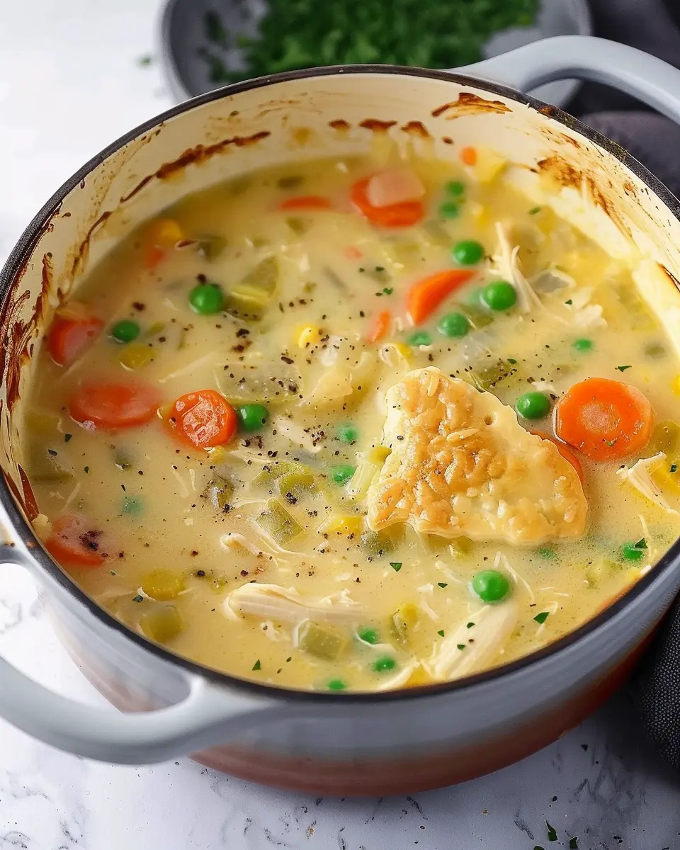 PrintChicken Pot Pie Soup: Easy Comfort Food with Turkey Bacon Delight