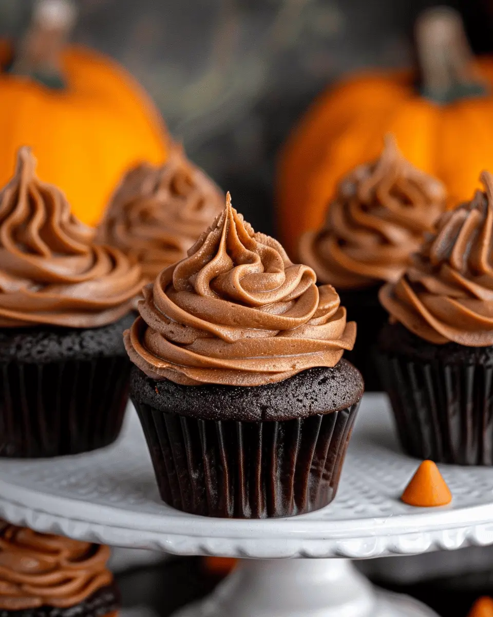 Indulge in the rich and delightful flavors of these Chocolate Pumpkin Cupcakes, perfect for the fall season.
