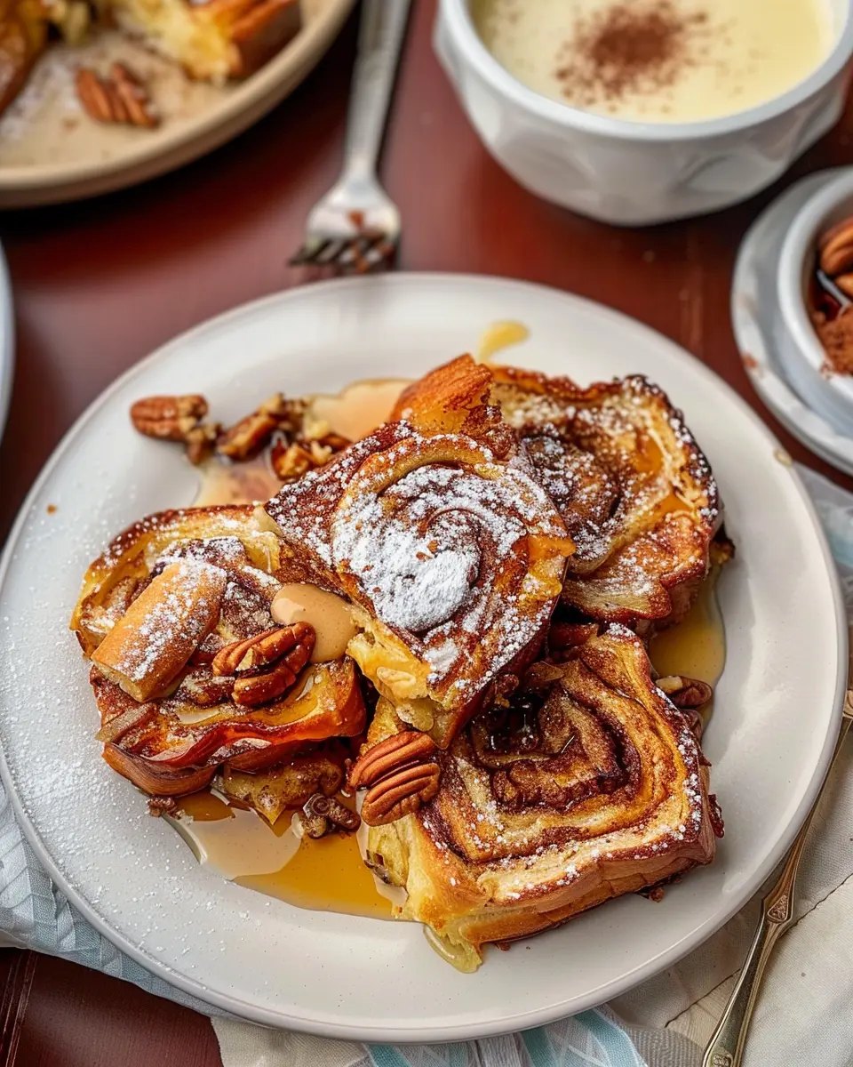 Imagine waking up to the enticing aroma of freshly baked cinnamon rolls merging harmoniously with the soft, fluffy texture of perfectly cooked French toast. Sounds amazing, doesn’t it? This dish is more than just a meal; it’s an experience. The gooey cinnamon filling paired with the crunch of caramelized edges creates an irresistible combination that invites anyone to linger a bit longer at the breakfast table.