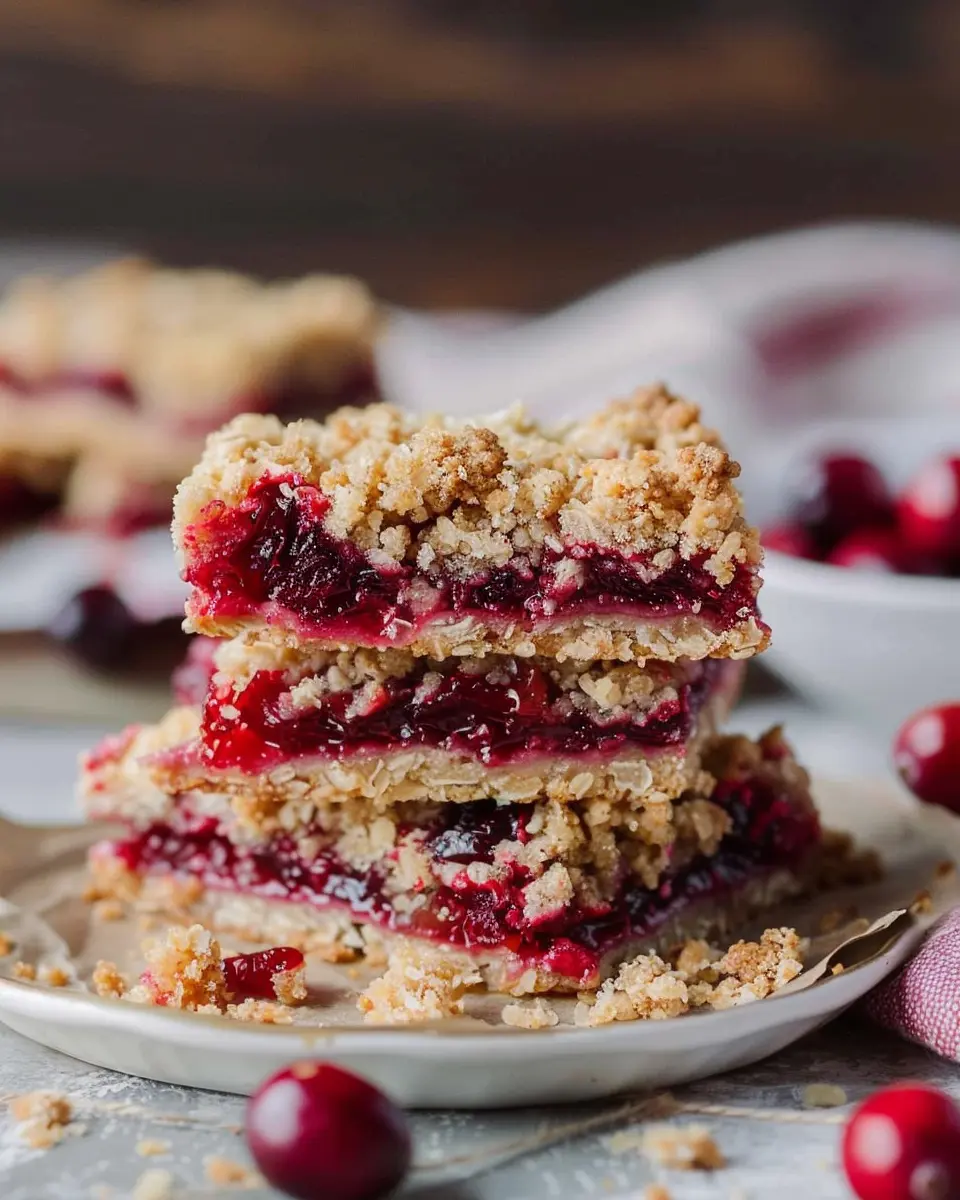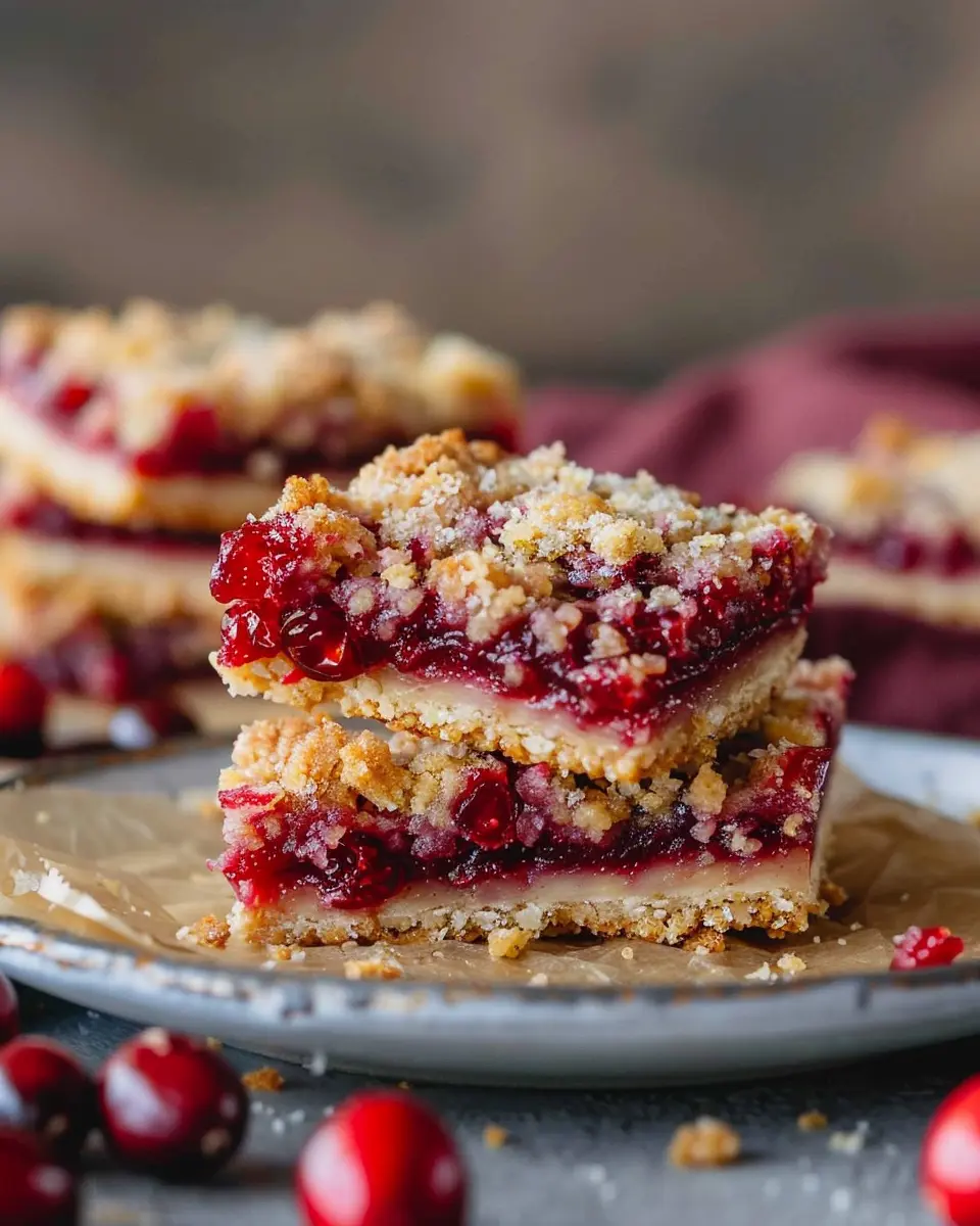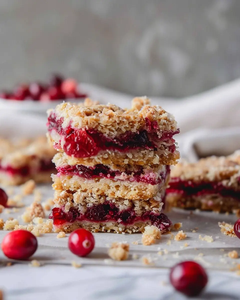 A delightful treat perfect for any occasion, these cranberry crumble bars blend sweet and tart flavors.