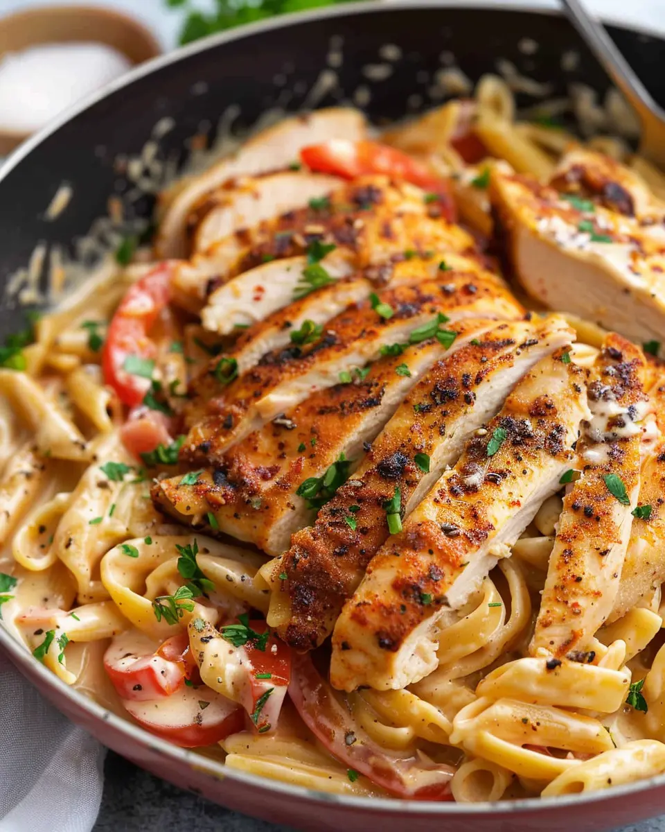 Presentation adds an exciting layer to your creamy Cajun chicken pasta. Start by twirling the pasta into a nest using a fork for an inviting look. Top this with slices of juicy chicken and a sprinkle of fresh parsley for a pop of color.