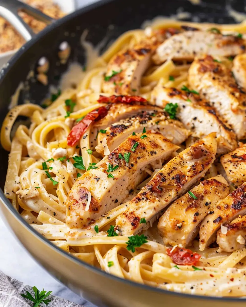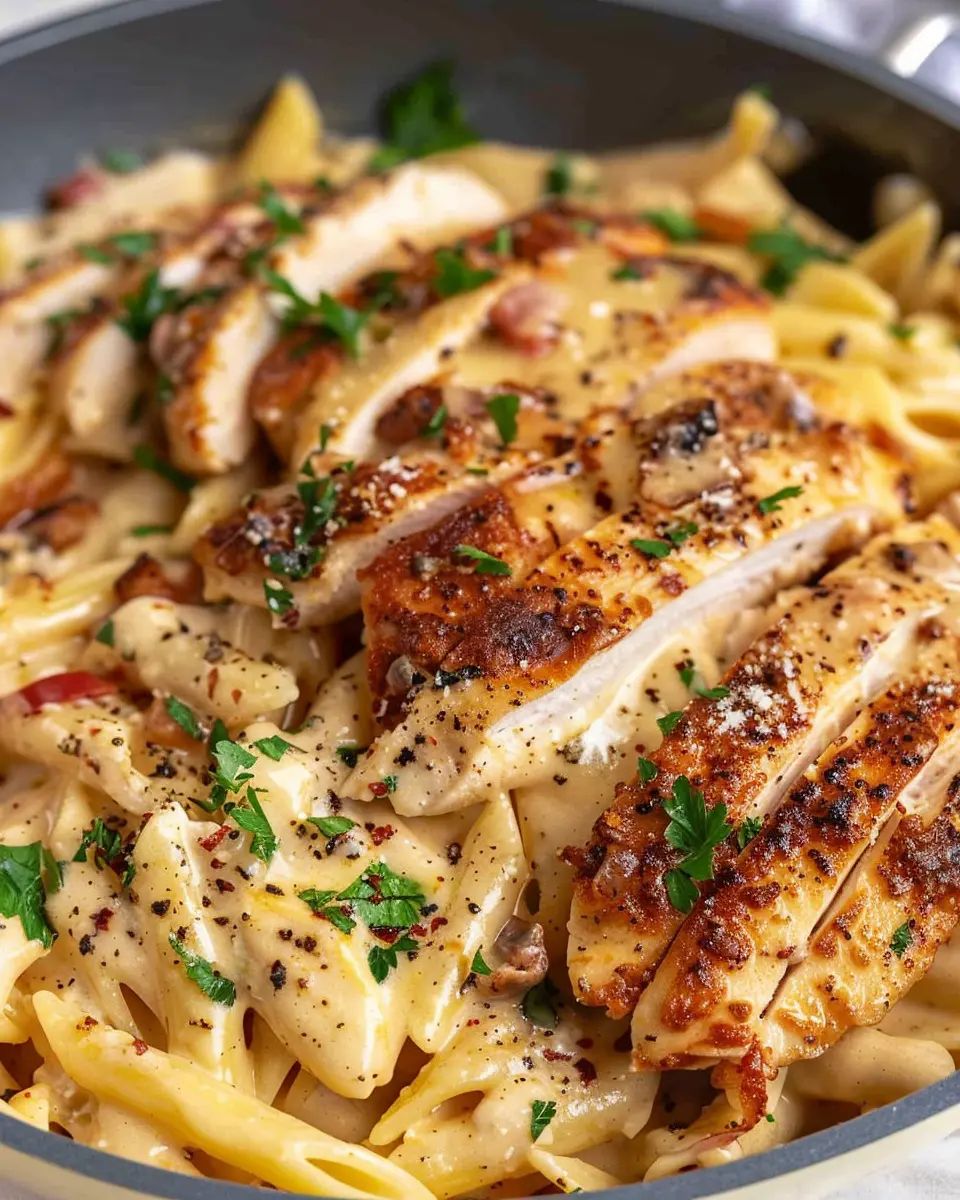 This is where the magic happens! Once your sauce is ready, add in the cooked pasta and sliced chicken. Toss everything together gently until the chicken and pasta are well-coated in the creamy sauce. If the sauce seems too thick, feel free to add a splash of extra chicken broth or pasta water to achieve your desired consistency.