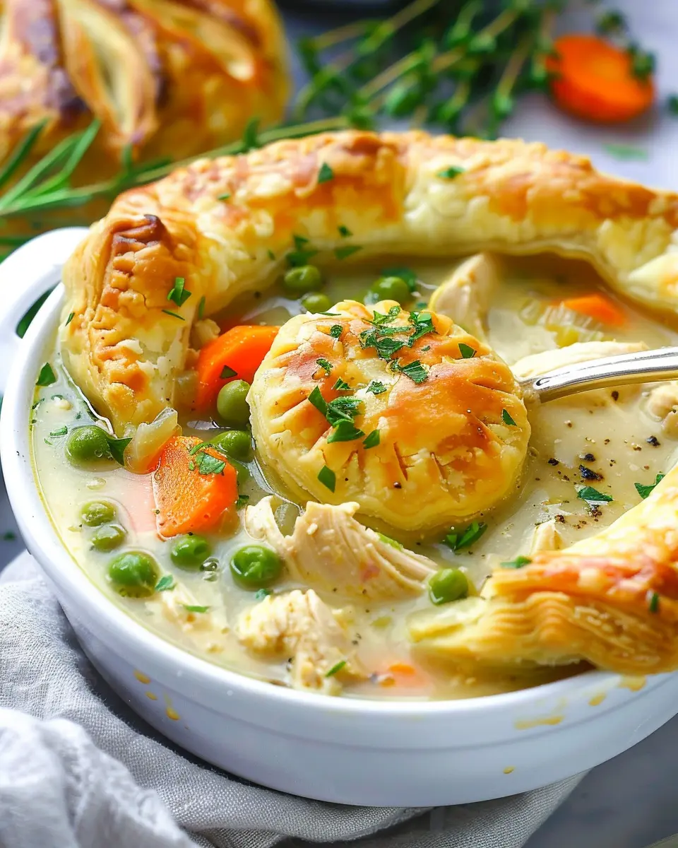 A warm and hearty creamy chicken pot pie soup perfect for cozy weeknights.