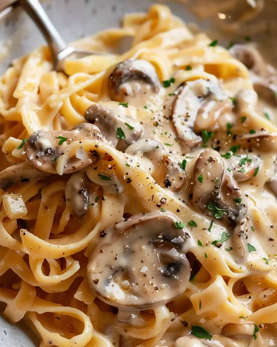 PrintCreamy Mushroom Pasta: Easy & Indulgent Recipe with Turkey Bacon