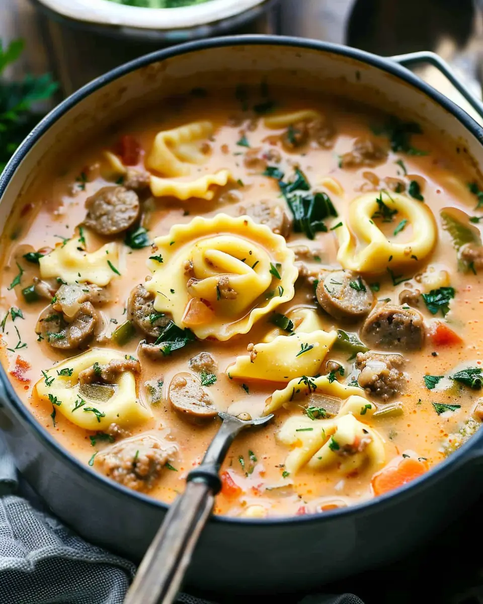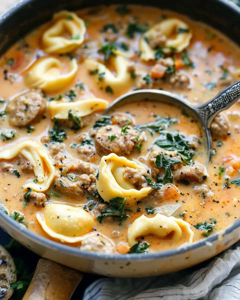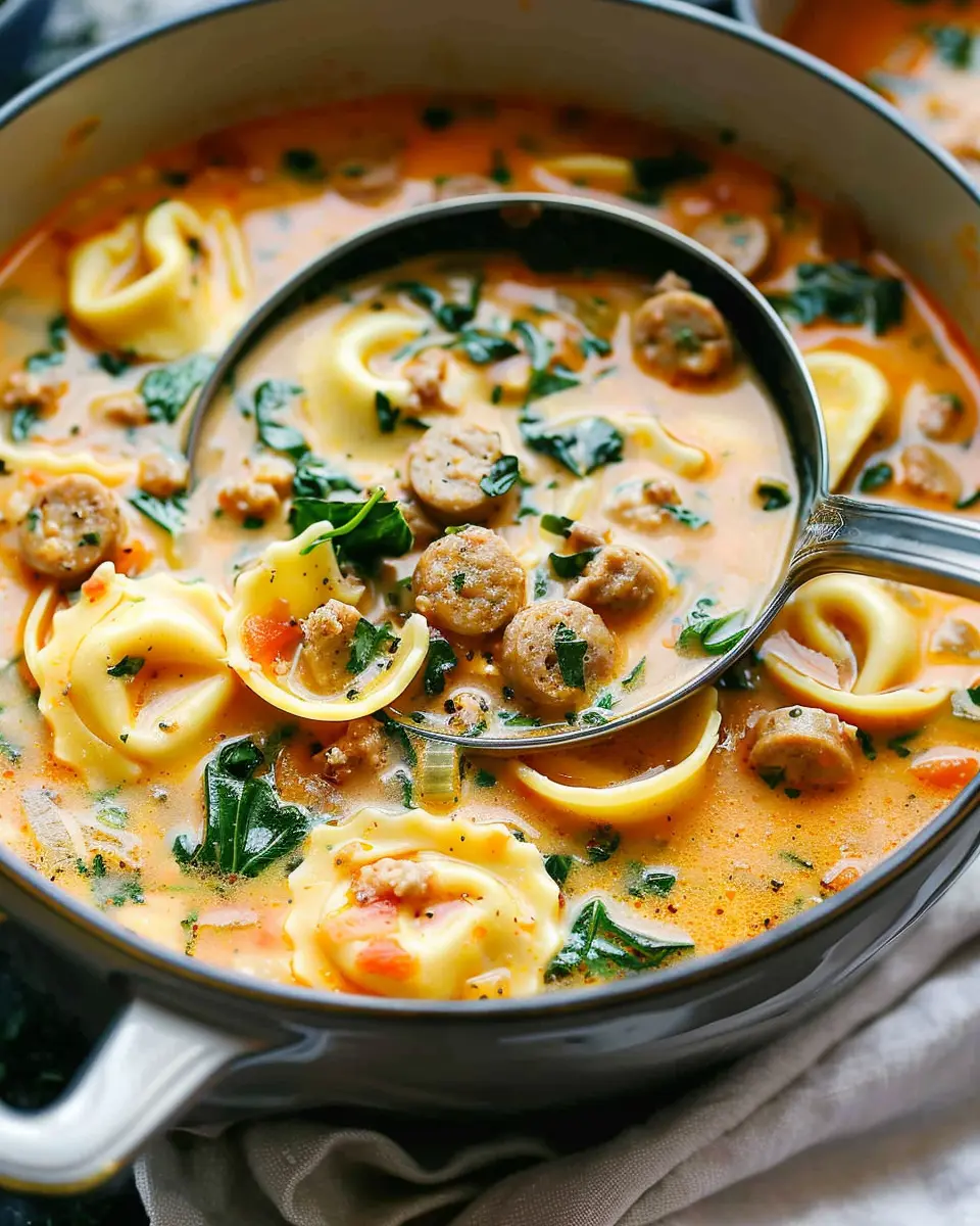A rich and comforting soup that combines savory sausage with tender tortellini in a creamy broth.