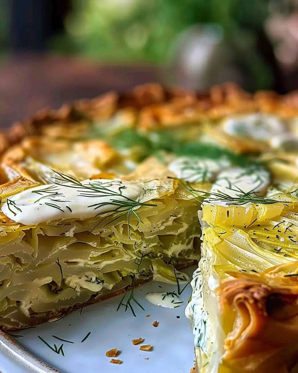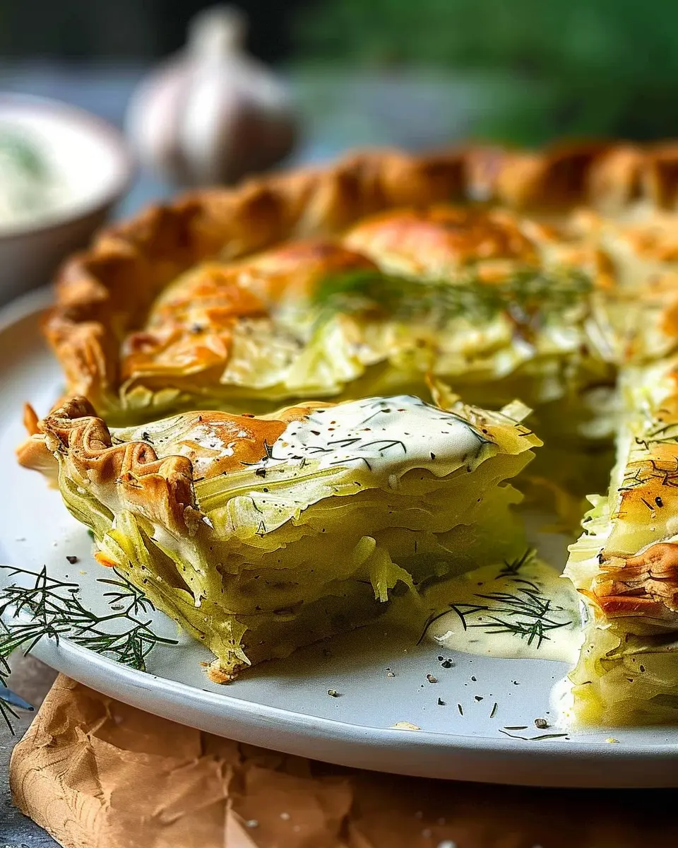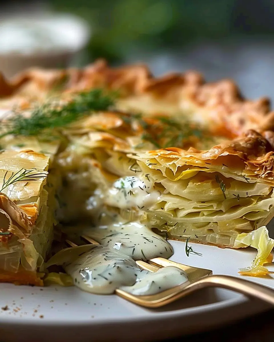 PrintCrispy Cabbage Pie with Dill Cream Sauce: A Delightful Twist