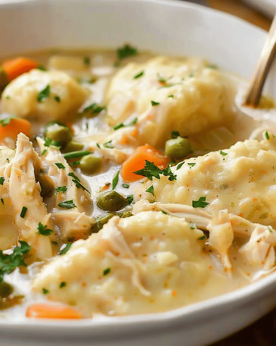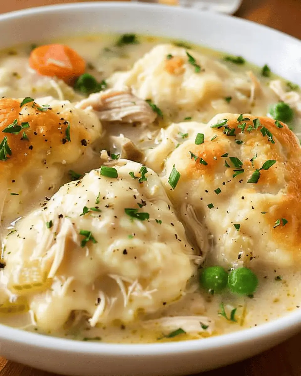 As the biscuits cook, the aroma will fill your kitchen, making it hard to resist peeking! After about 30 minutes, you’ll be greeted with tender dumplings atop a hearty chicken-rich broth.