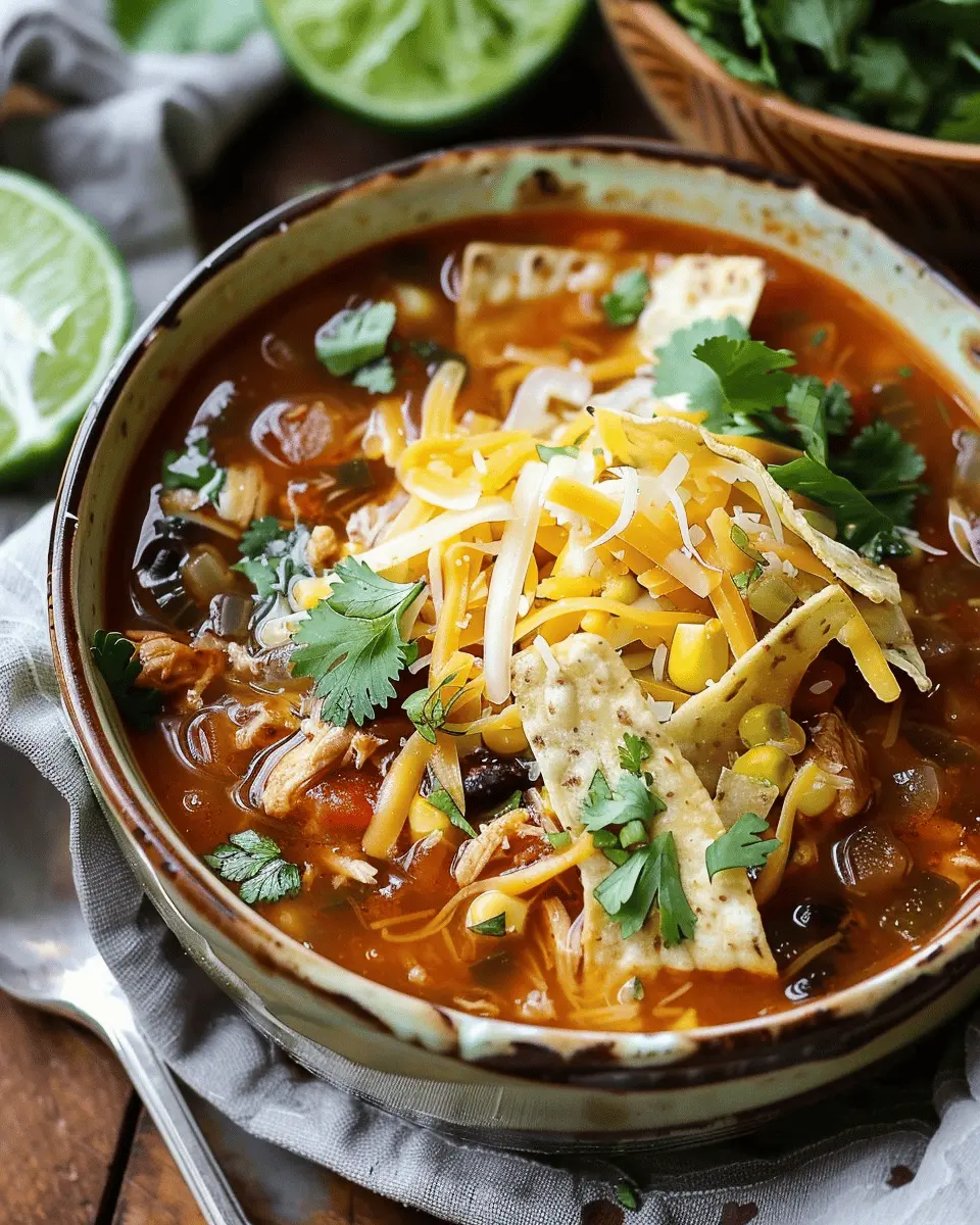 This Crockpot Spicy Chicken Tortilla Soup is a comforting dish packed with flavor, perfect for any occasion.