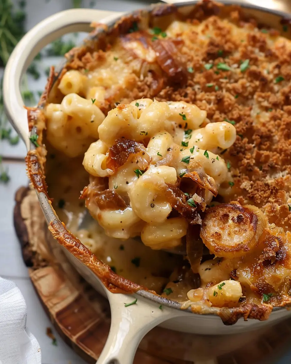 Keywords: Decadent French Onion Soup Mac & Cheese, Comfort Food, Cheesy Pasta