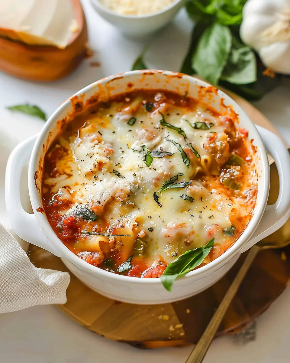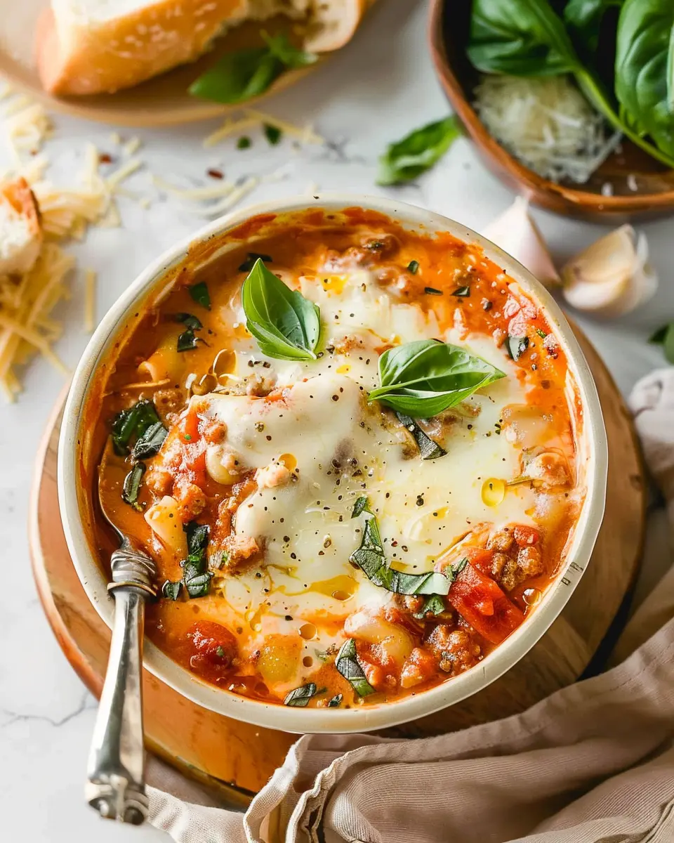 A warm and hearty soup that’s reminiscent of traditional lasagna, perfect for cozy evenings.