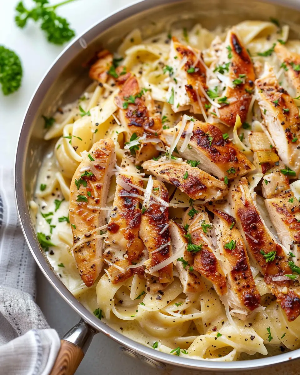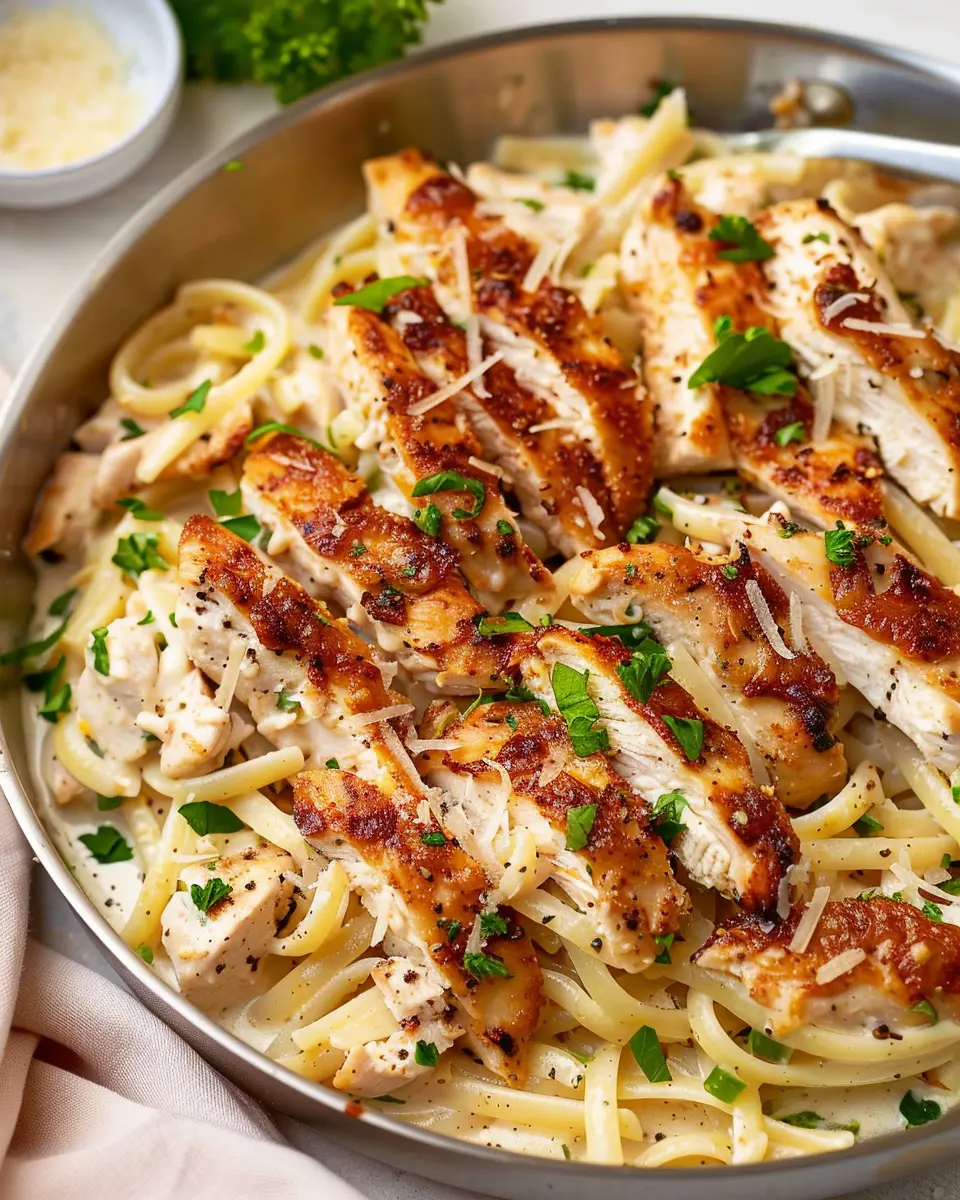 The actual cooking takes around 20–25 minutes. You’ll sauté the chicken, simmer the sauce, and cook the pasta, all while filling your kitchen with the delicious aroma of garlic and cheese.