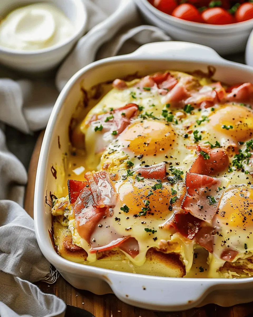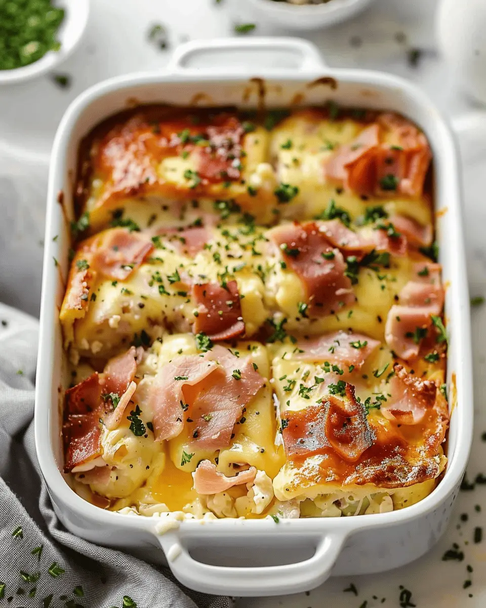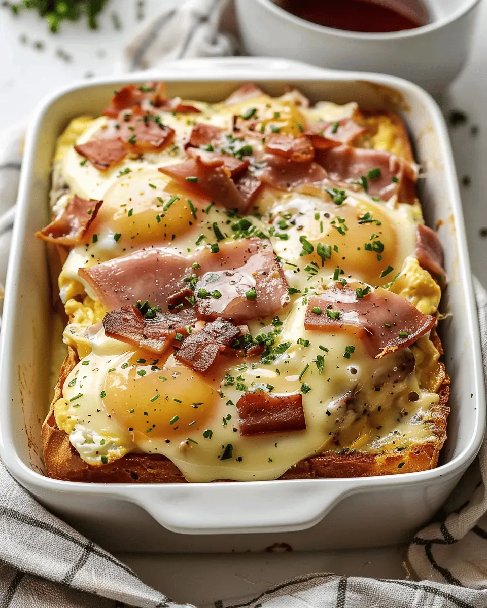PrintEggs Benedict Casserole: Easy Turkey Bacon & Chicken Ham Delight