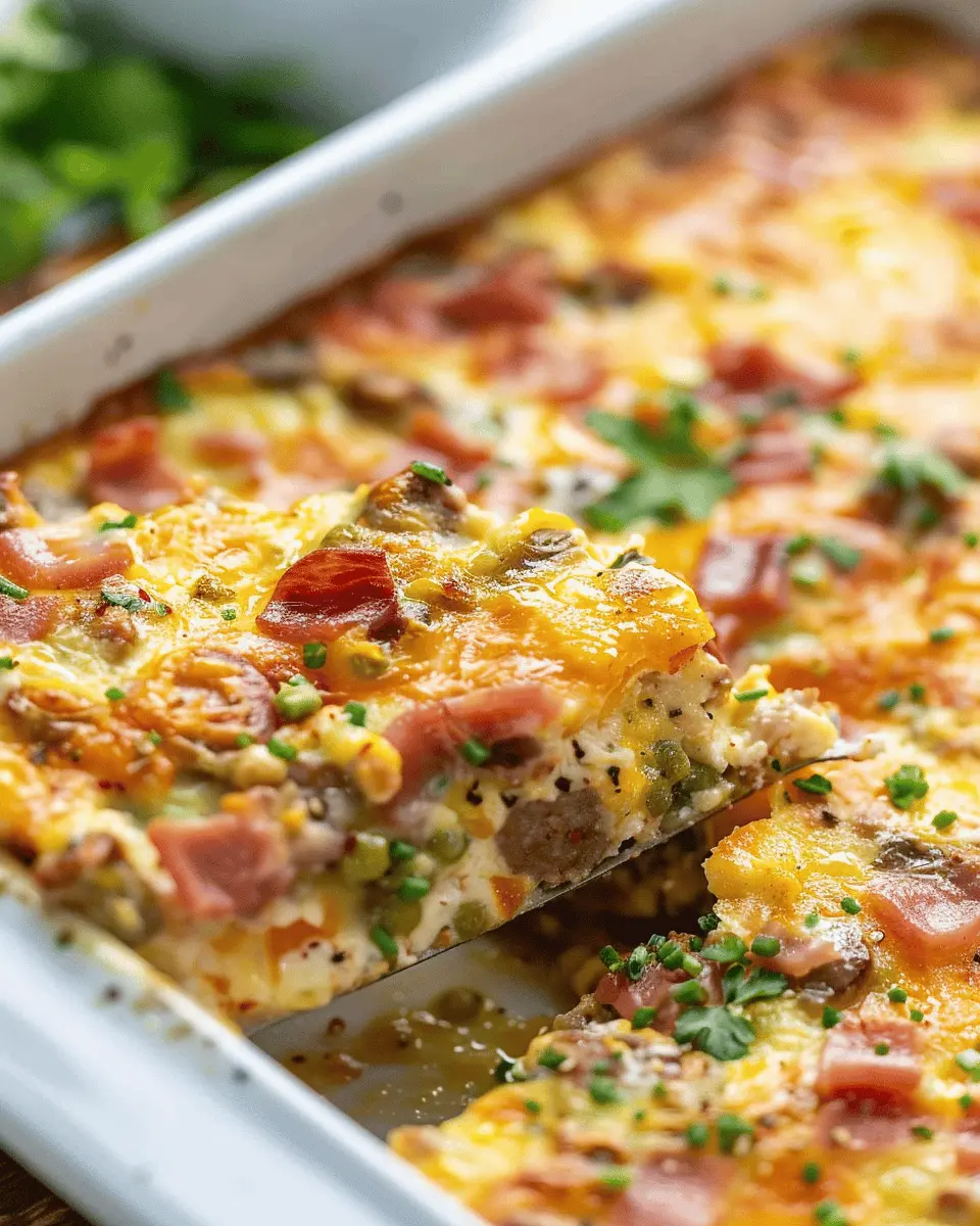 The Farmer’s Breakfast Casserole is a comforting and hearty dish perfect for starting your day on the right foot. Bursting with flavors from Turkey Bacon, Chicken Ham, and a medley of vegetables, it’s not just a meal but an experience. Whether you’re meal prepping for a busy week or hosting a cozy brunch, this casserole will undoubtedly impress.