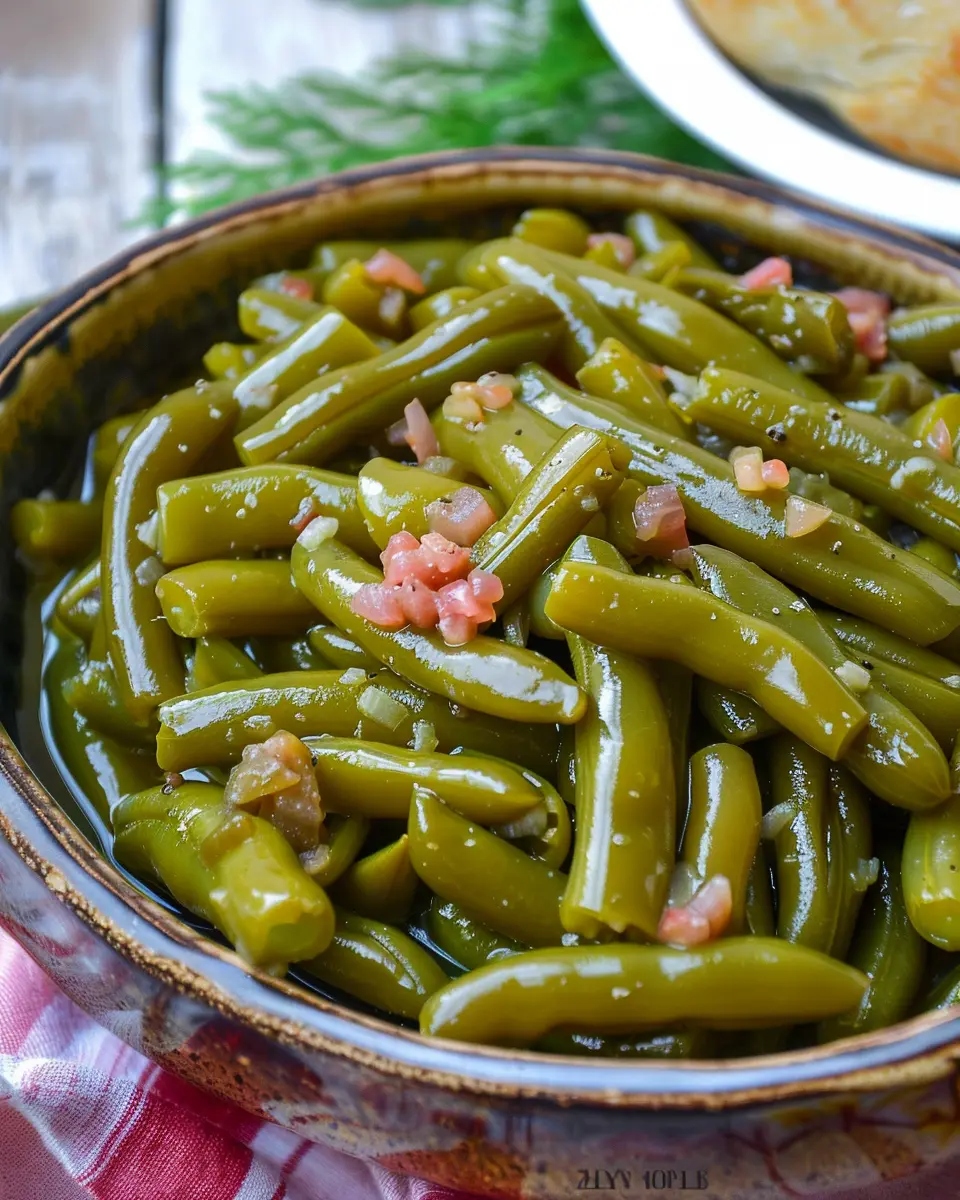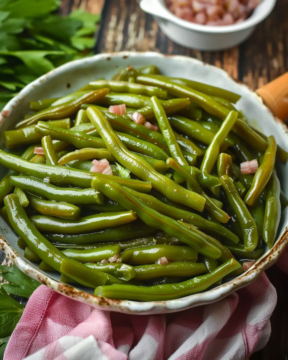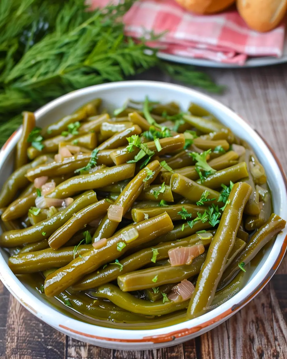 Once everything is cooked to perfection, it’s time for the best part—serving! Transfer your Grandma’s Canned Green Beans to a serving dish. Consider garnishing with a sprinkle of fresh parsley for a pop of color, which also complements the flavors beautifully.