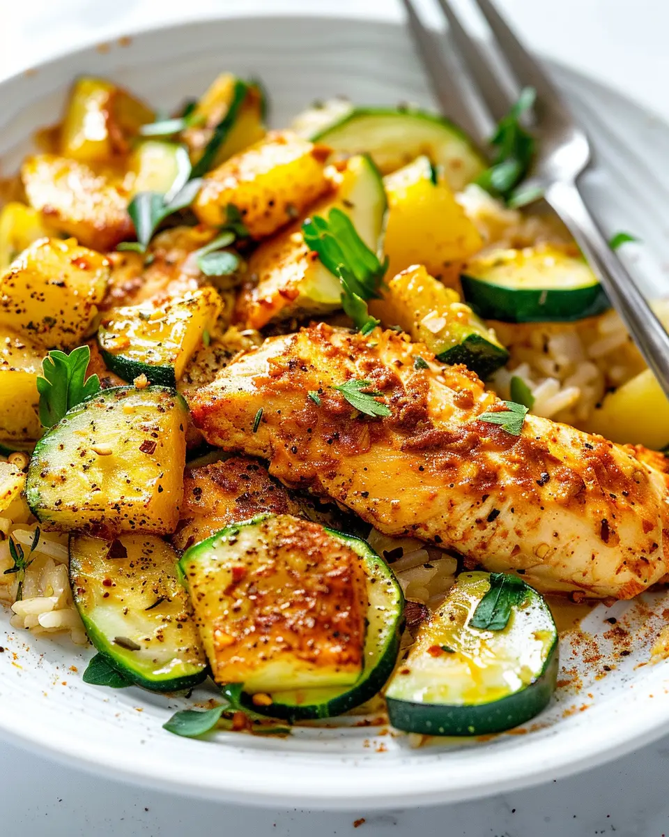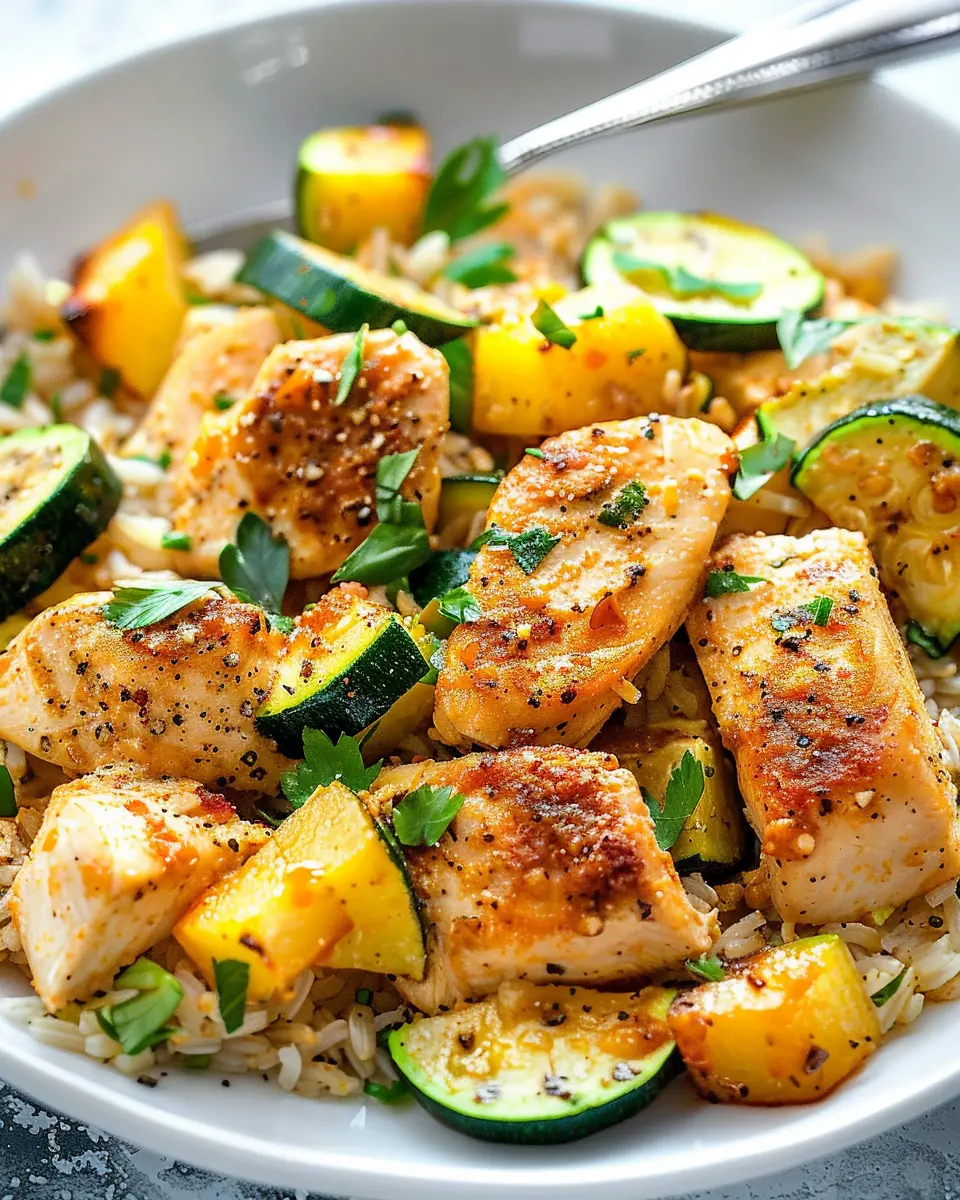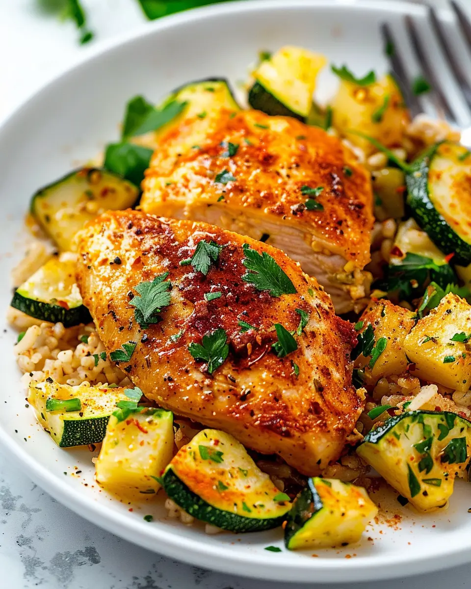 A nutritious and flavorful dish featuring tender chicken breast paired with fresh zucchini and squash.