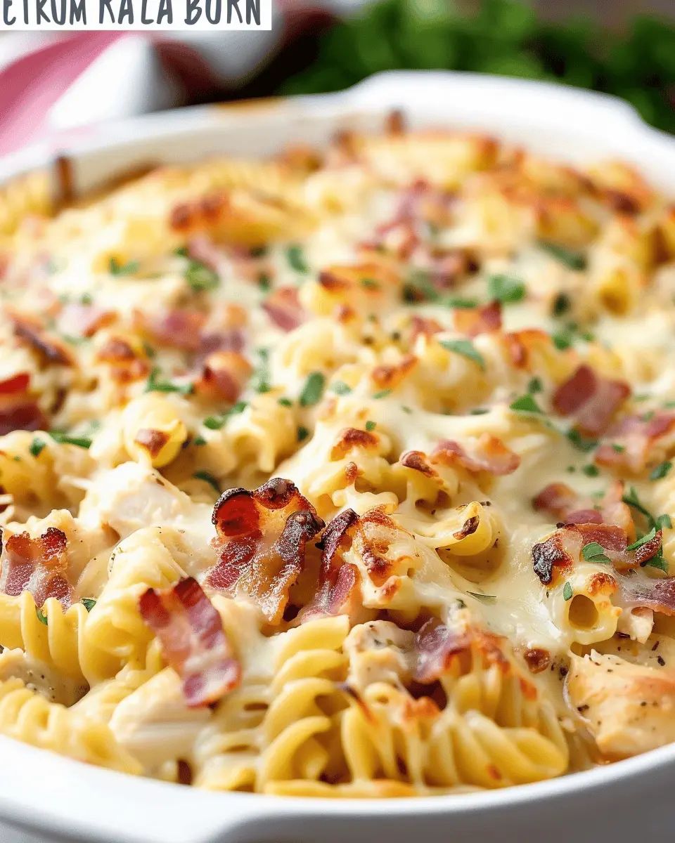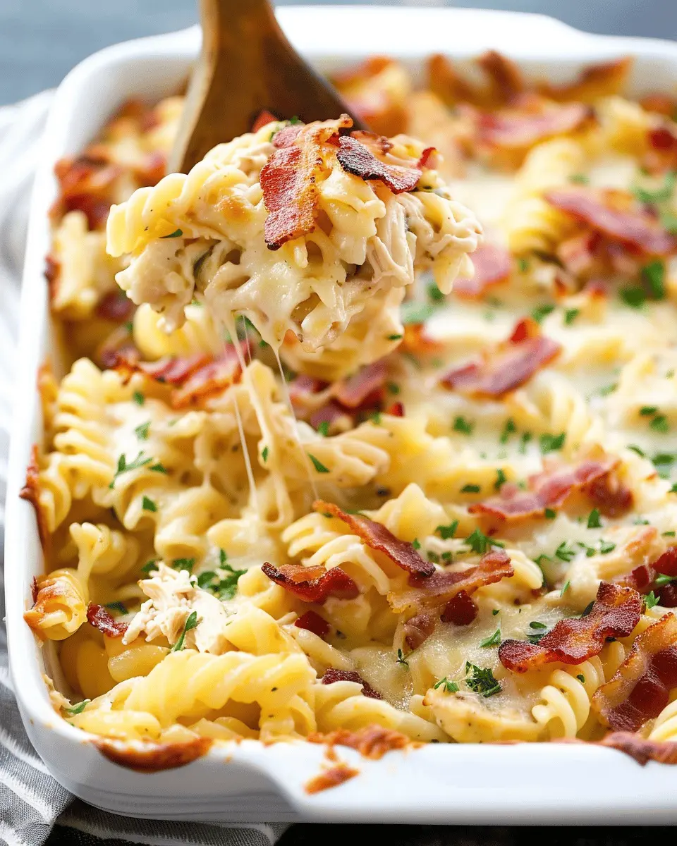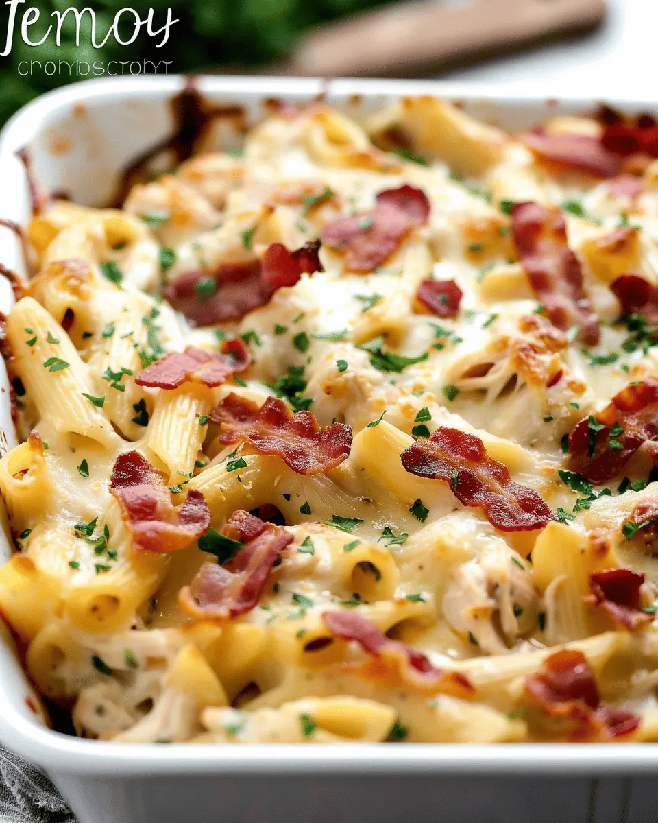In summary, the Irresistible Cheesy Bacon Ranch Chicken Pasta Bake is not just another pasta dish; it’s a comforting meal that brings everyone to the table. Its creamy sauce, loaded with savory flavors of turkey bacon and chicken, creates a delightful medley that promises to satisfy even the pickiest eaters. This dish is perfect for busy weeknights, as it can be made ahead and stored in the fridge. Why not try customizing it with your favorite veggies or different cheeses? Your taste buds will thank you! For more ideas on hearty bakes, check out this resource.