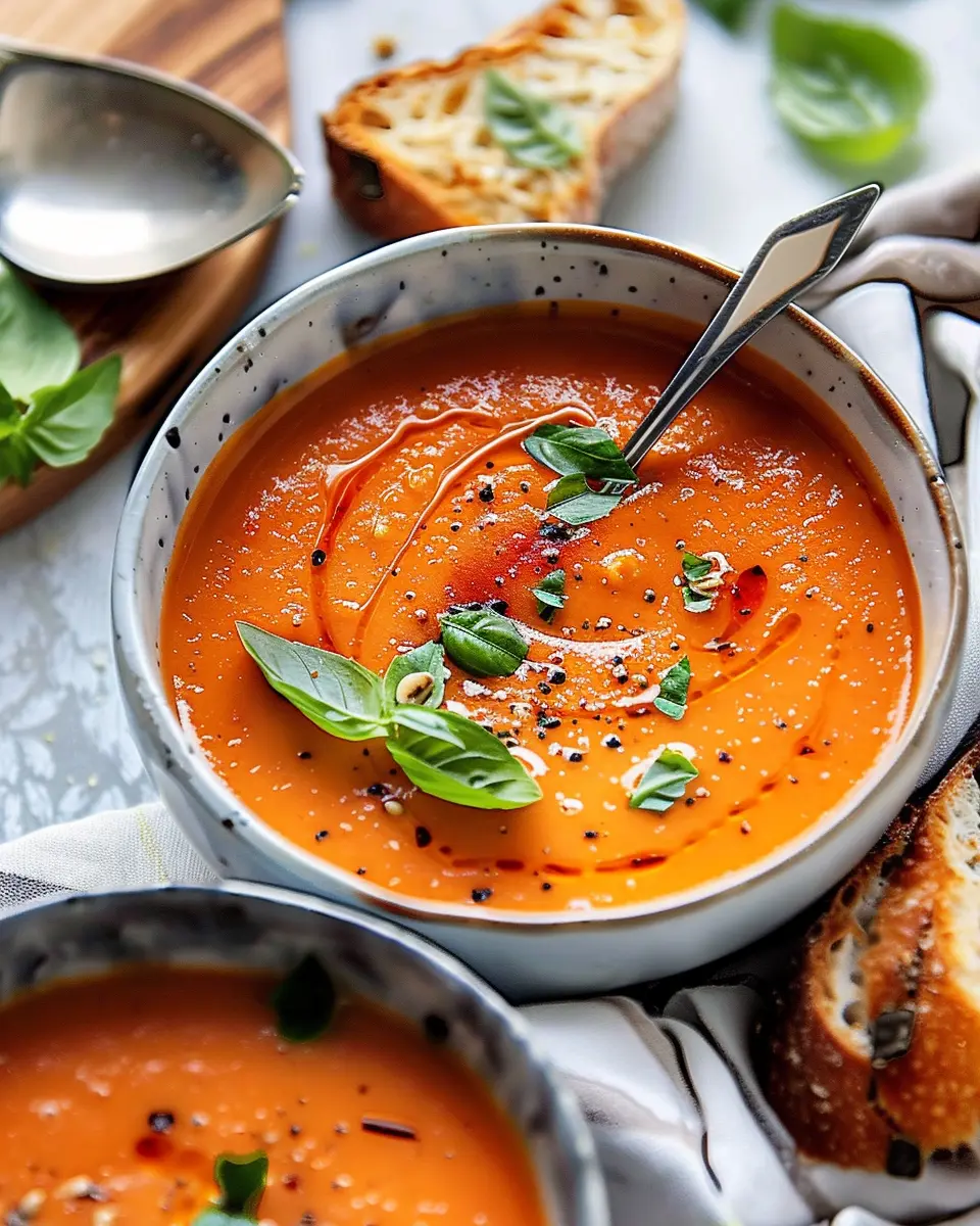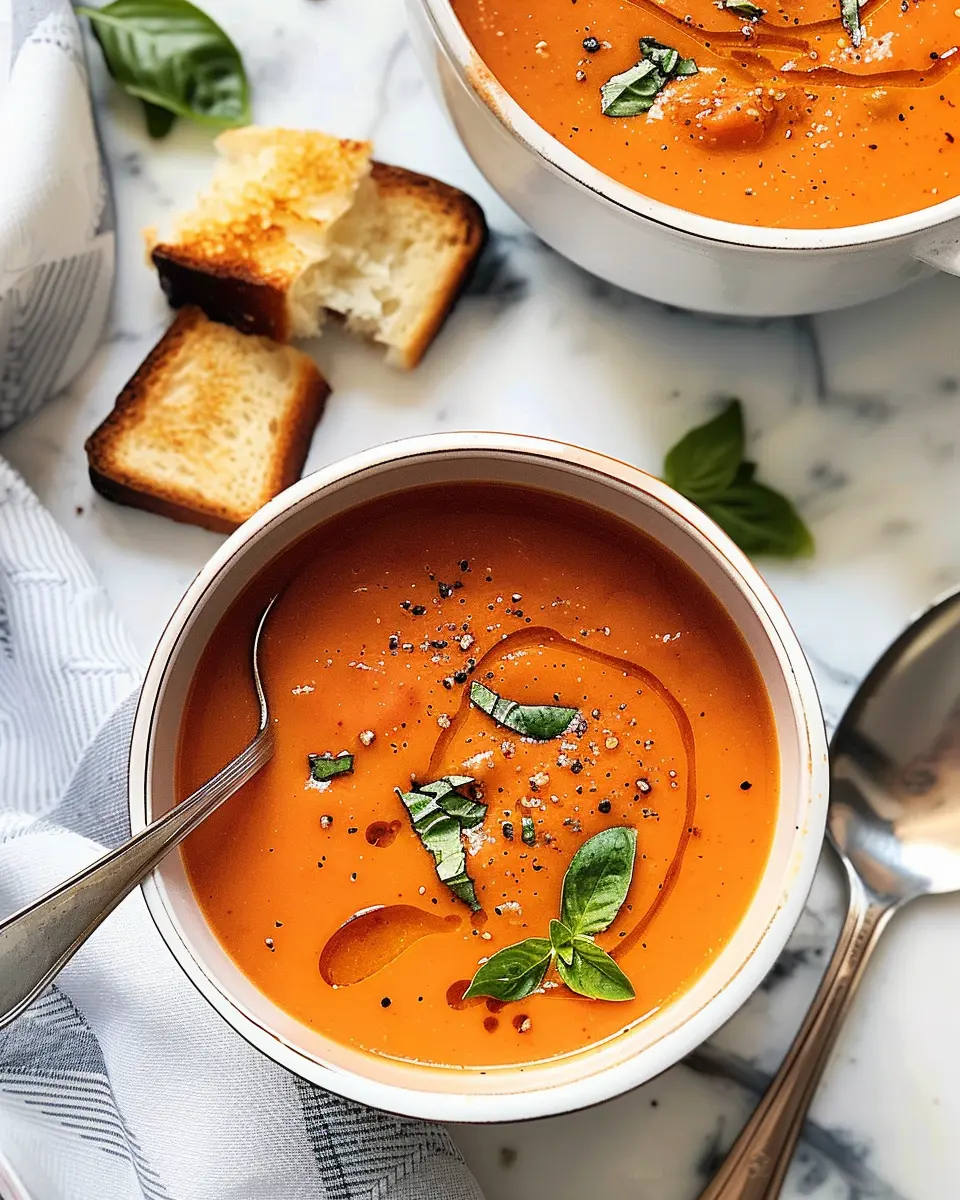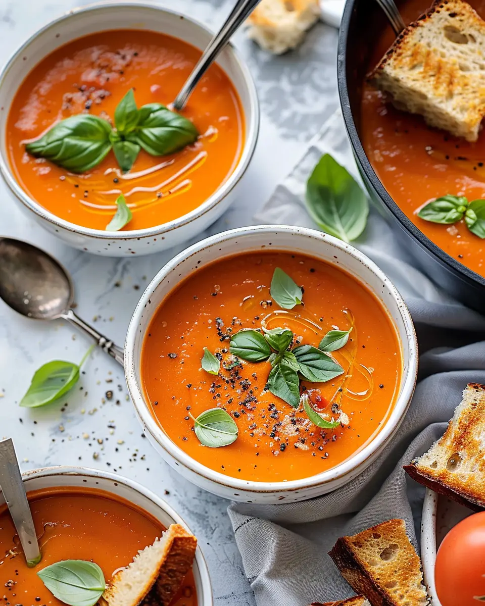 Now that your soup is ready, it’s time to serve! Ladle it into warm bowls and garnish with fresh basil or a sprinkle of cheese. You can even serve it alongside a warm crusty bread or grilled cheese sandwiches—because what’s better than dipping a gooey cheese sandwich into a bowl of tomato soup?