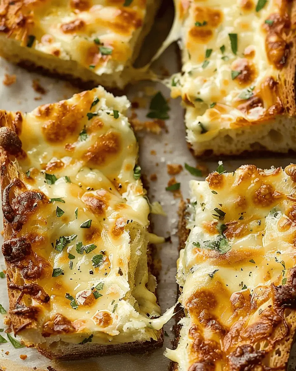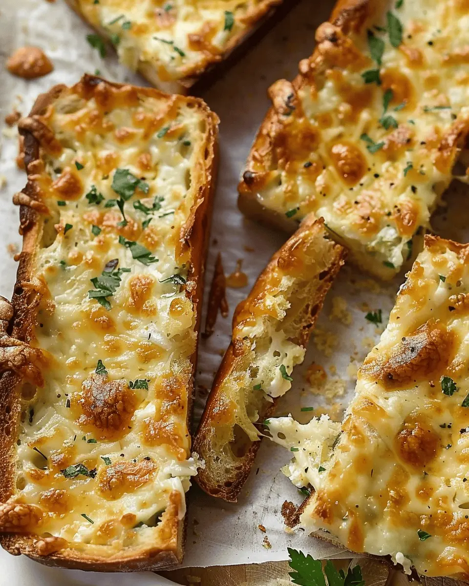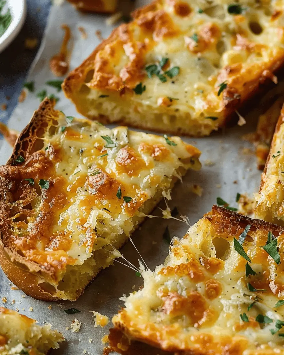 Think outside the traditional garlic bread box! Try adding different toppings to your cheesy garlic bread. Consider sprinkling some crushed red pepper flakes or fresh herbs like basil or parsley for an extra depth of flavor. You could even sauté some spinach or artichokes to make a garlic bread dip that pairs beautifully with your crispy creation. Have you ever thought about using turkey bacon or chicken ham? These savory additions take the flavor profile to a whole new level, making each bite unexpectedly delicious.
