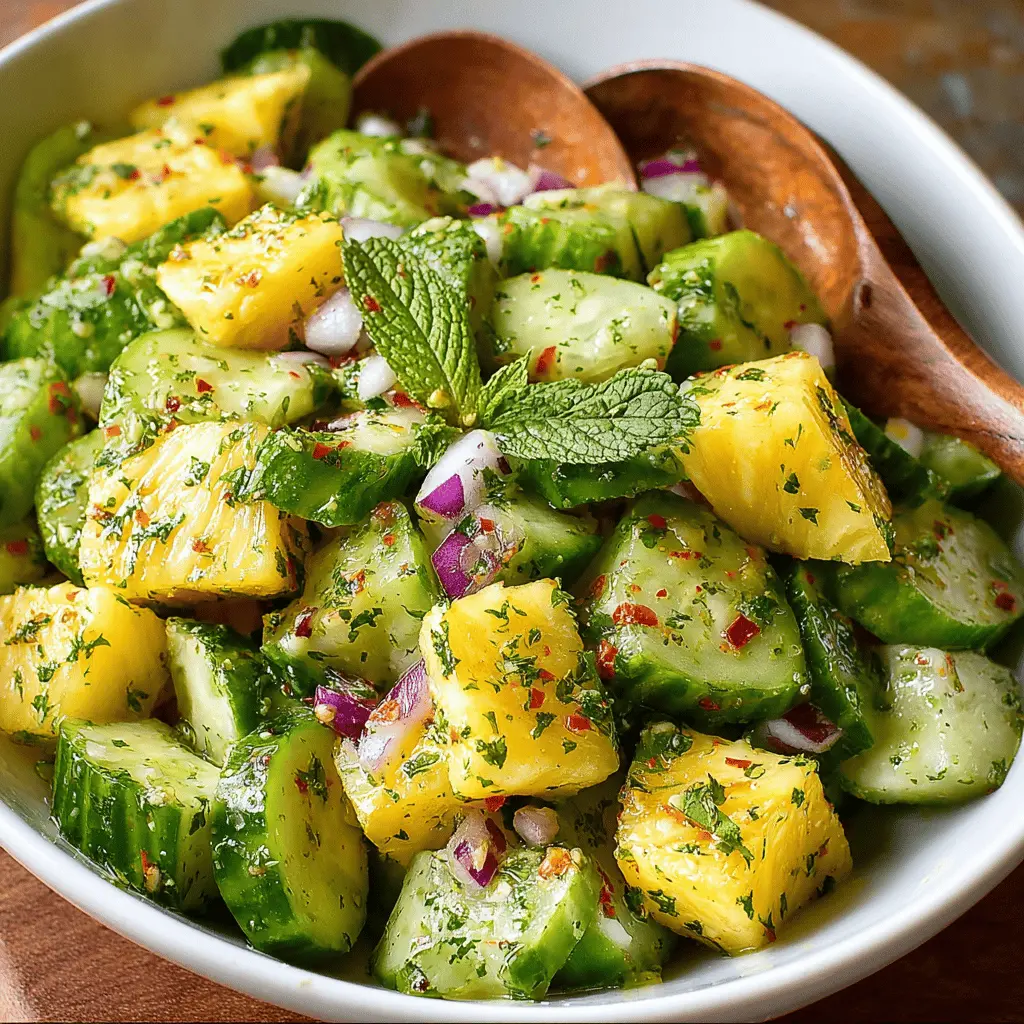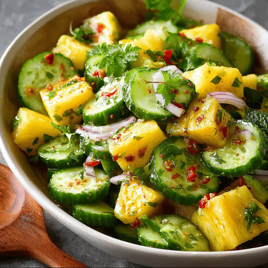 First off, the flavor combination is nothing short of magical. The juicy, tropical sweetness of pineapple contrasts beautifully with the cool, crunchy bite of cucumbers. This balance creates a refreshing dish that not only tastes great but also leaves you feeling revitalized, making it perfect for those warm summer days.