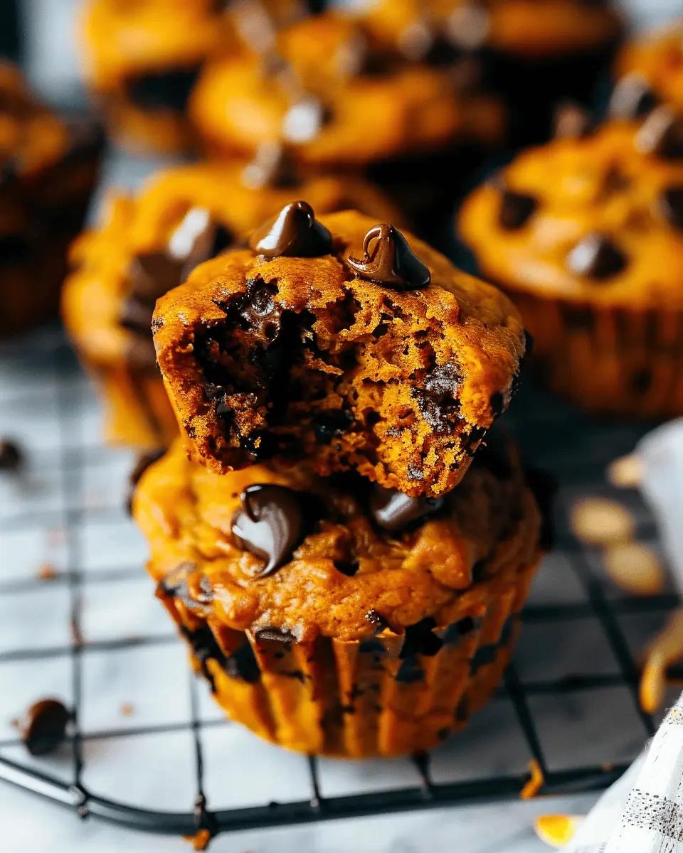 Enjoy the cozy flavors of fall with these delicious pumpkin chocolate muffins, perfect for a delightful treat.