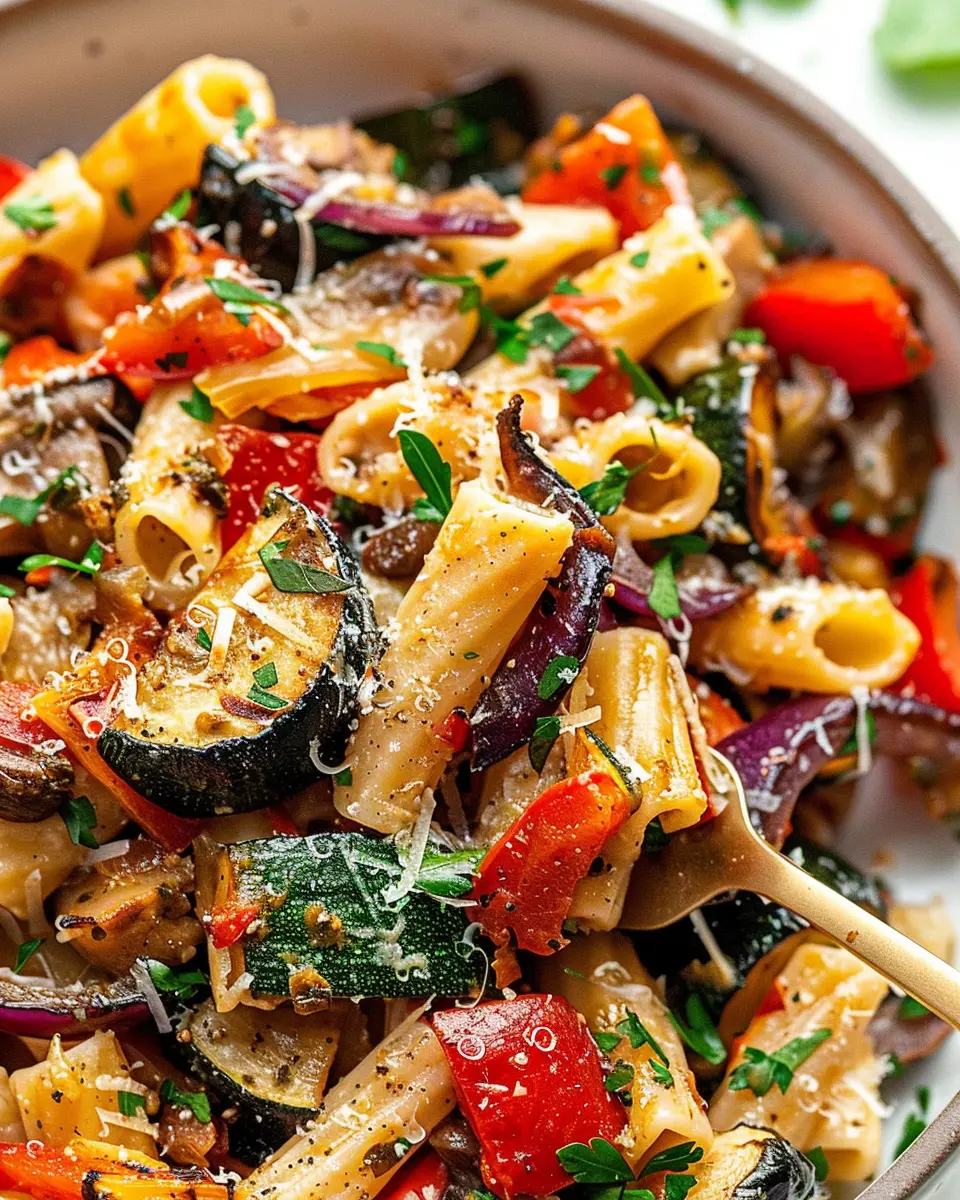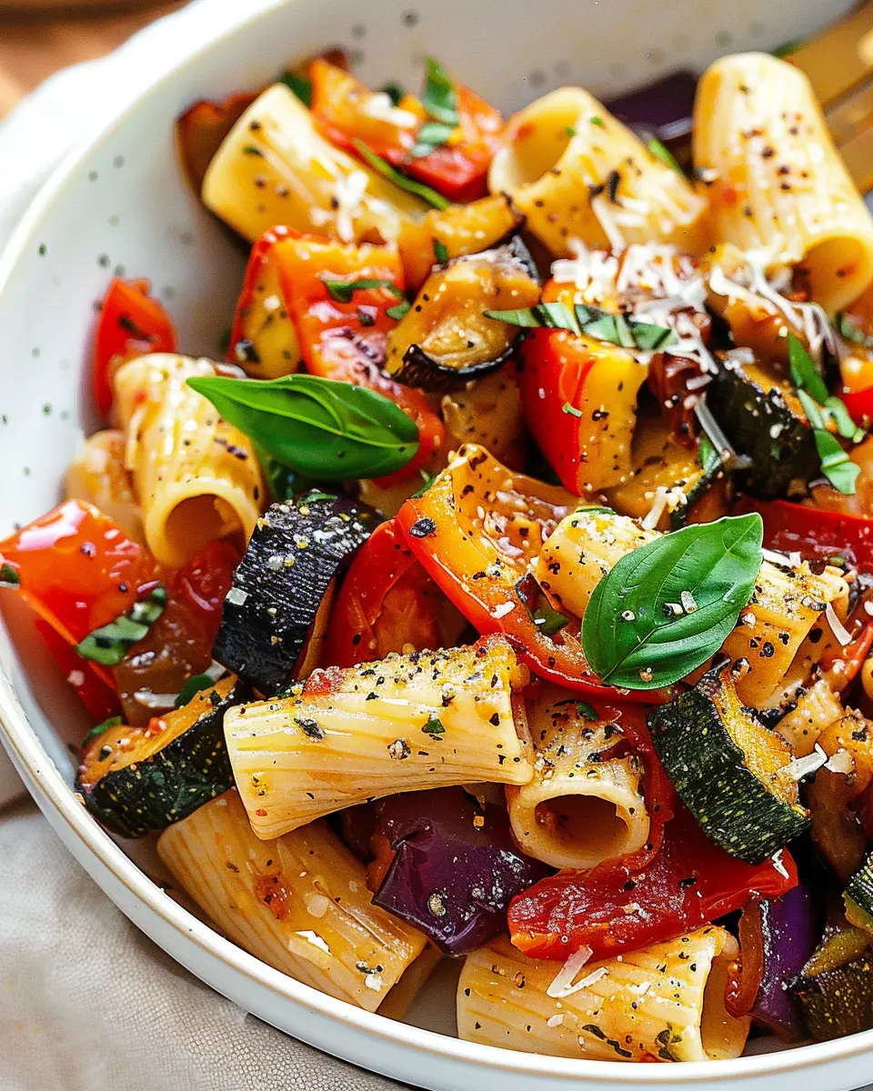 A delicious and simple recipe for roasted vegetable pasta that highlights fresh flavors.