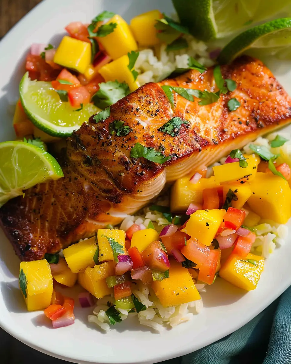 PrintSalmon with Mango Salsa: A Juicy Delight for Your Dinner Table