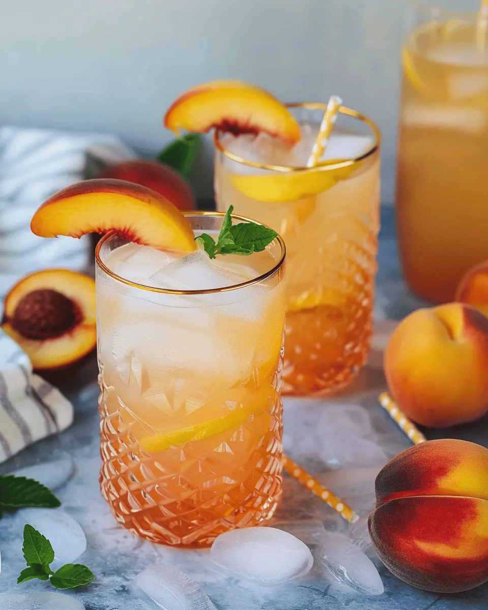 This combination brings the sweetness of peaches and the zest of lemons together, creating a refreshing summer sip. For more inspiration on peach recipes, check out this Peach Recipe Collection.
