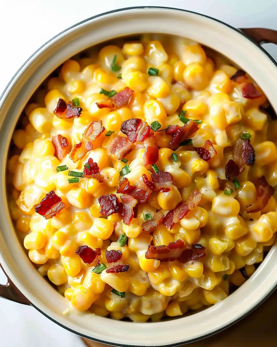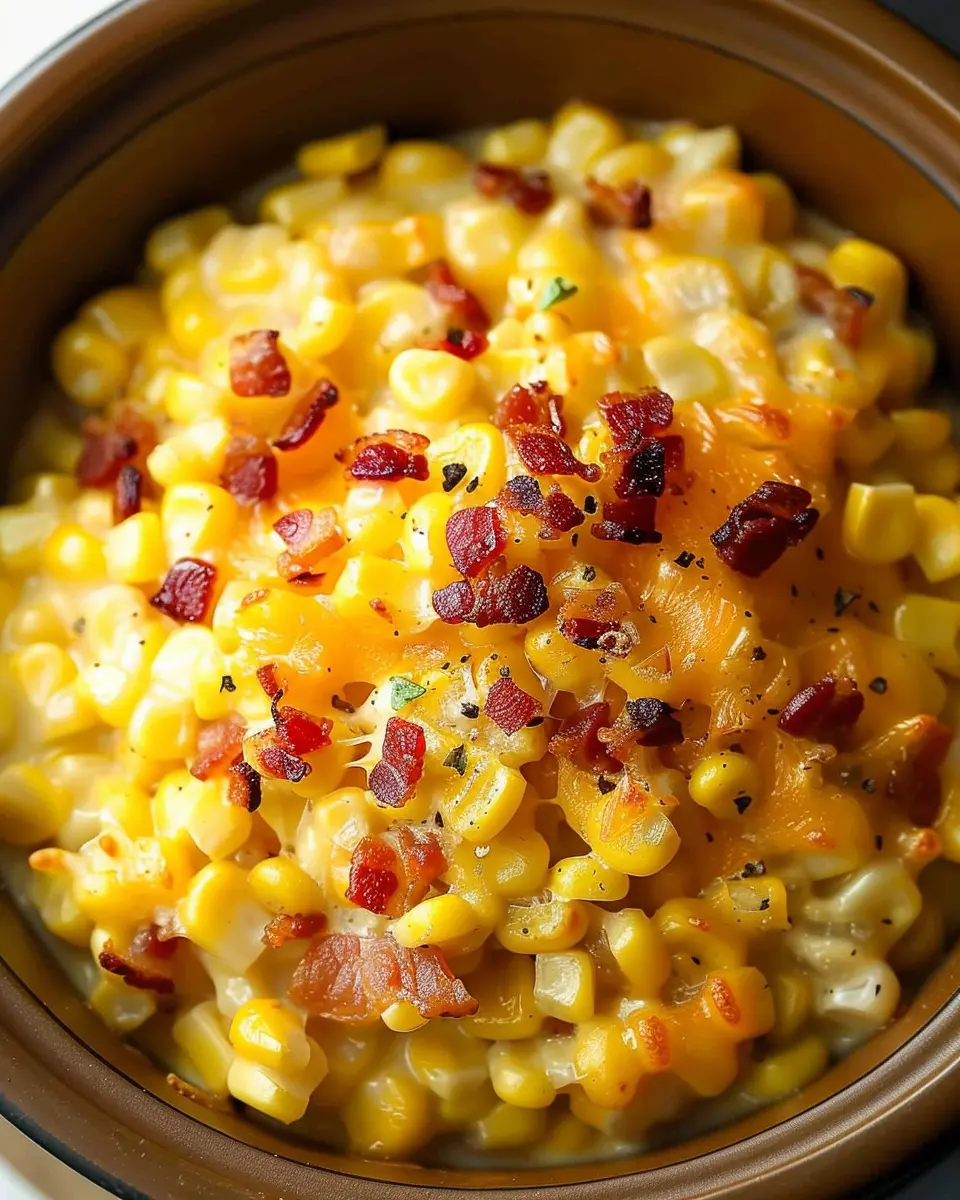 Keywords: Slow Cooker Cheddar Corn, Bacon, Creamy Corn