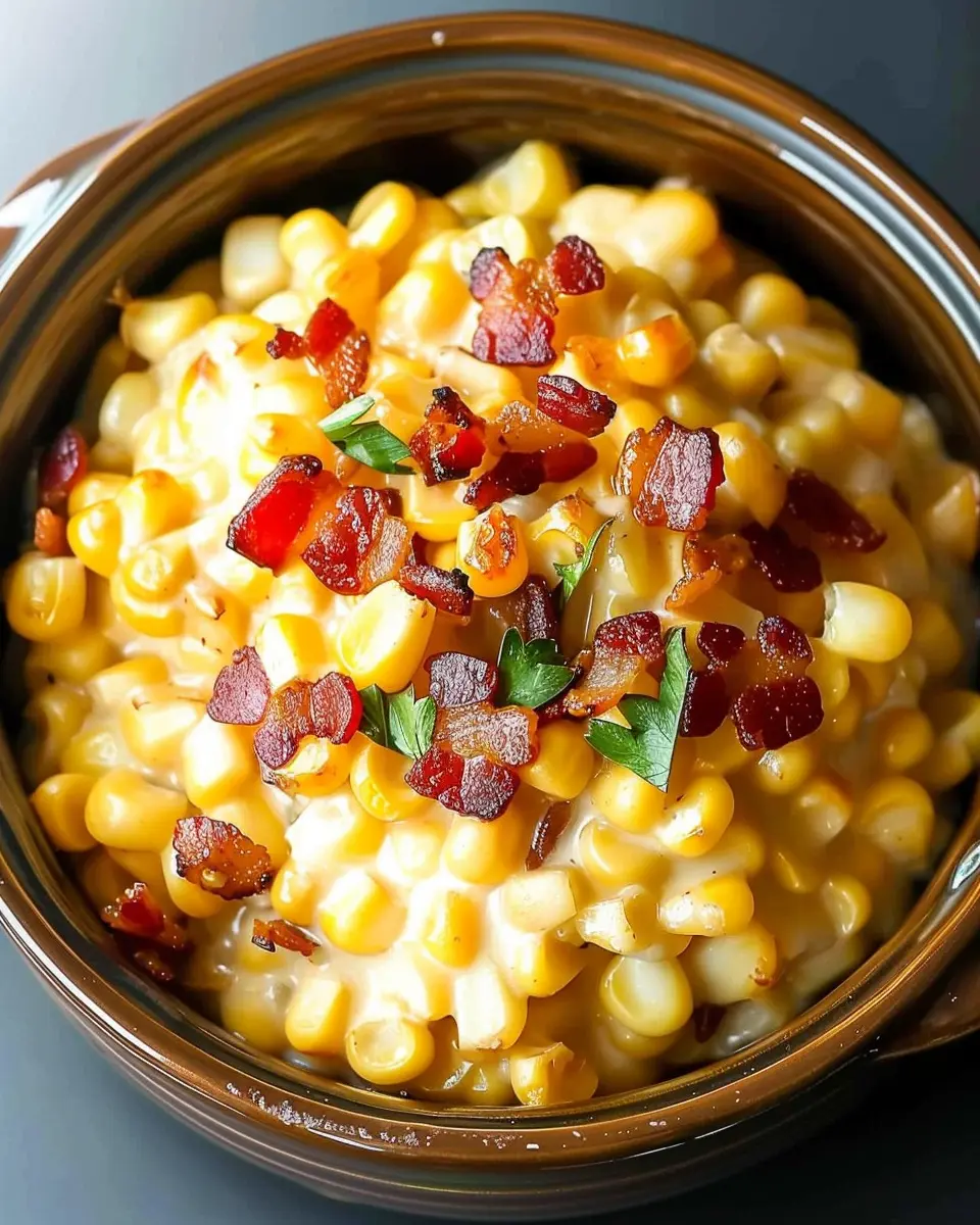 Slow Cooker Cheddar Corn with Turkey Bacon: A Creamy Delight