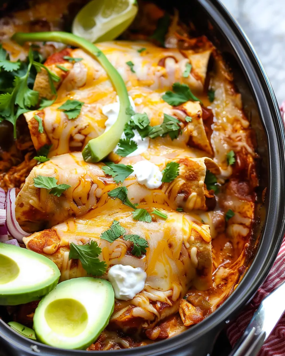 By following these simple steps, you’ll create delicious slow cooker chicken enchiladas that not only taste incredible but also make your kitchen smell divine. Enjoy your meal with a side of avocado or a refreshing salad to balance the flavors. Happy cooking!