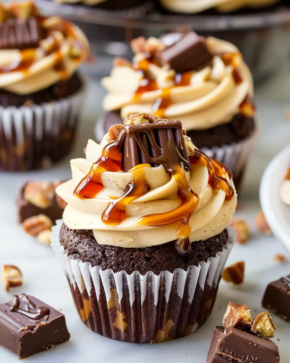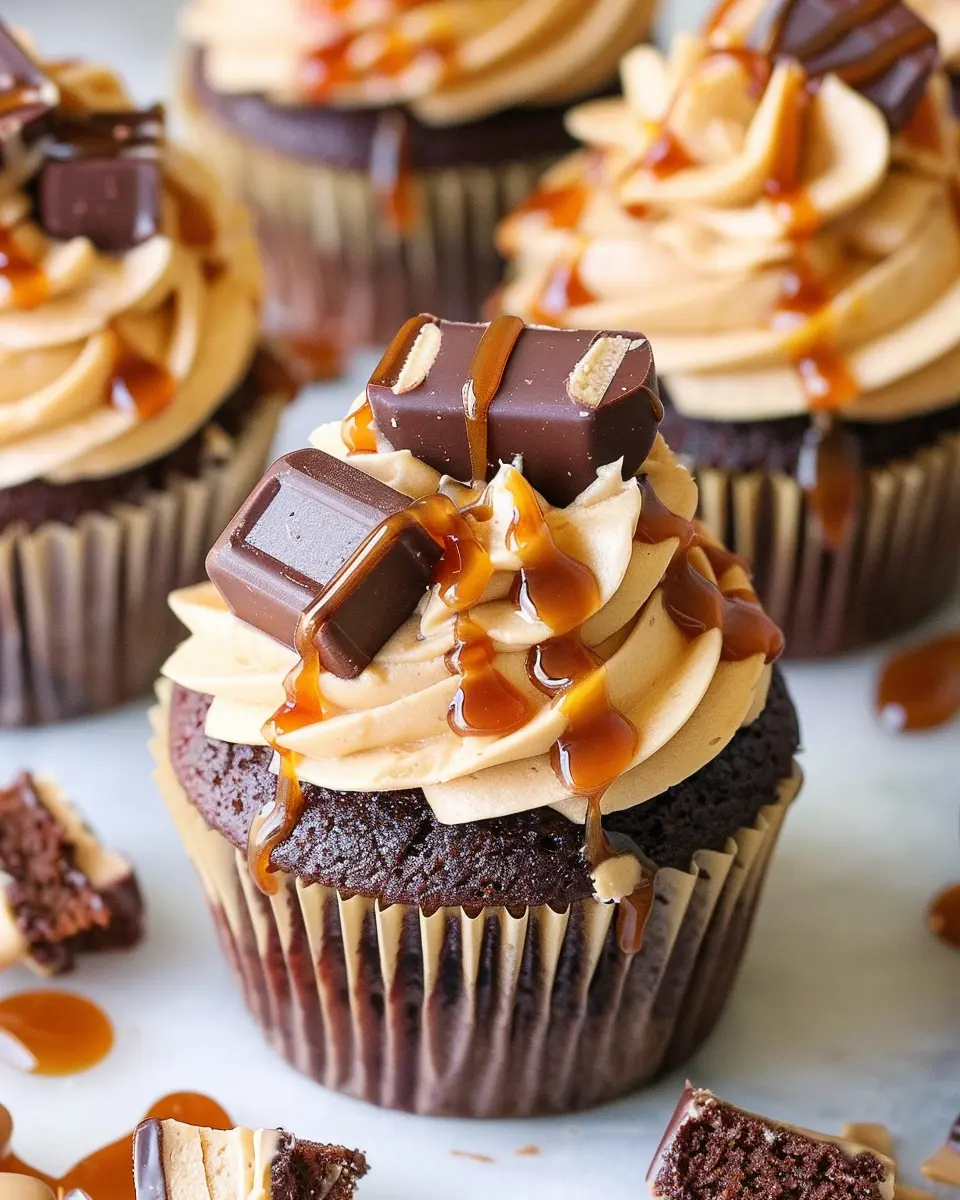 These Snickers cupcakes combine rich chocolate cake with creamy peanut butter frosting and a gooey caramel center, making them the ultimate indulgent treat!