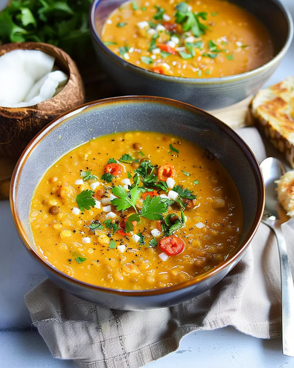 Keywords: Spicy Lentil Soup, Comfort Food, Coconut Soup