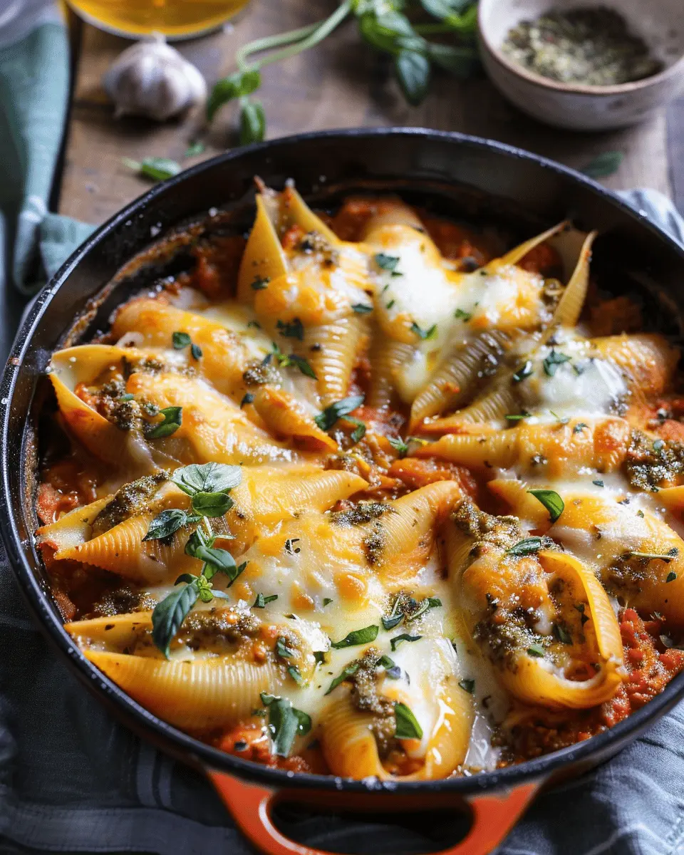 Getting started with these spicy pumpkin and pesto cheese stuffed shells is a breeze! You’ll need about 20 minutes to gather your ingredients and prepare the filling. This is the fun part where the kitchen fills with delightful aromas, especially as you mix that creamy cheese with a hint of pumpkin spice.