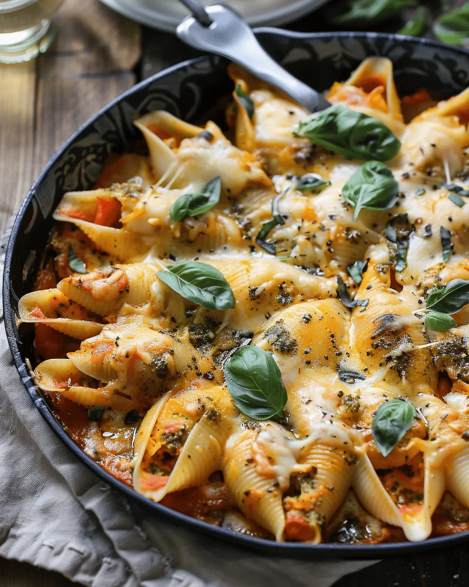 PrintSpicy Pumpkin and Pesto Cheese Stuffed Shells: An Indulgent Feast