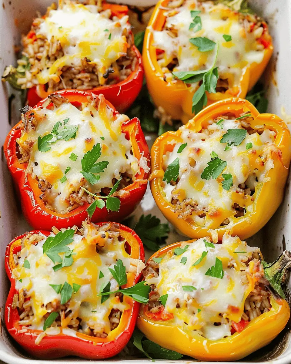 These delicious stuffed peppers are more than just a comfort food; they’re nutrient-dense too! Each serving offers an array of essential vitamins and minerals, including: