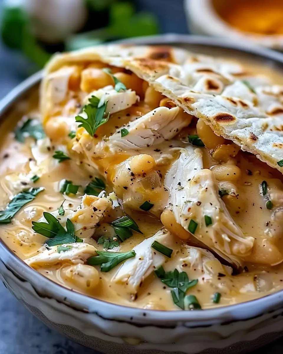 Warm up with this delicious and hearty white chicken chili, perfect for cozy nights in.